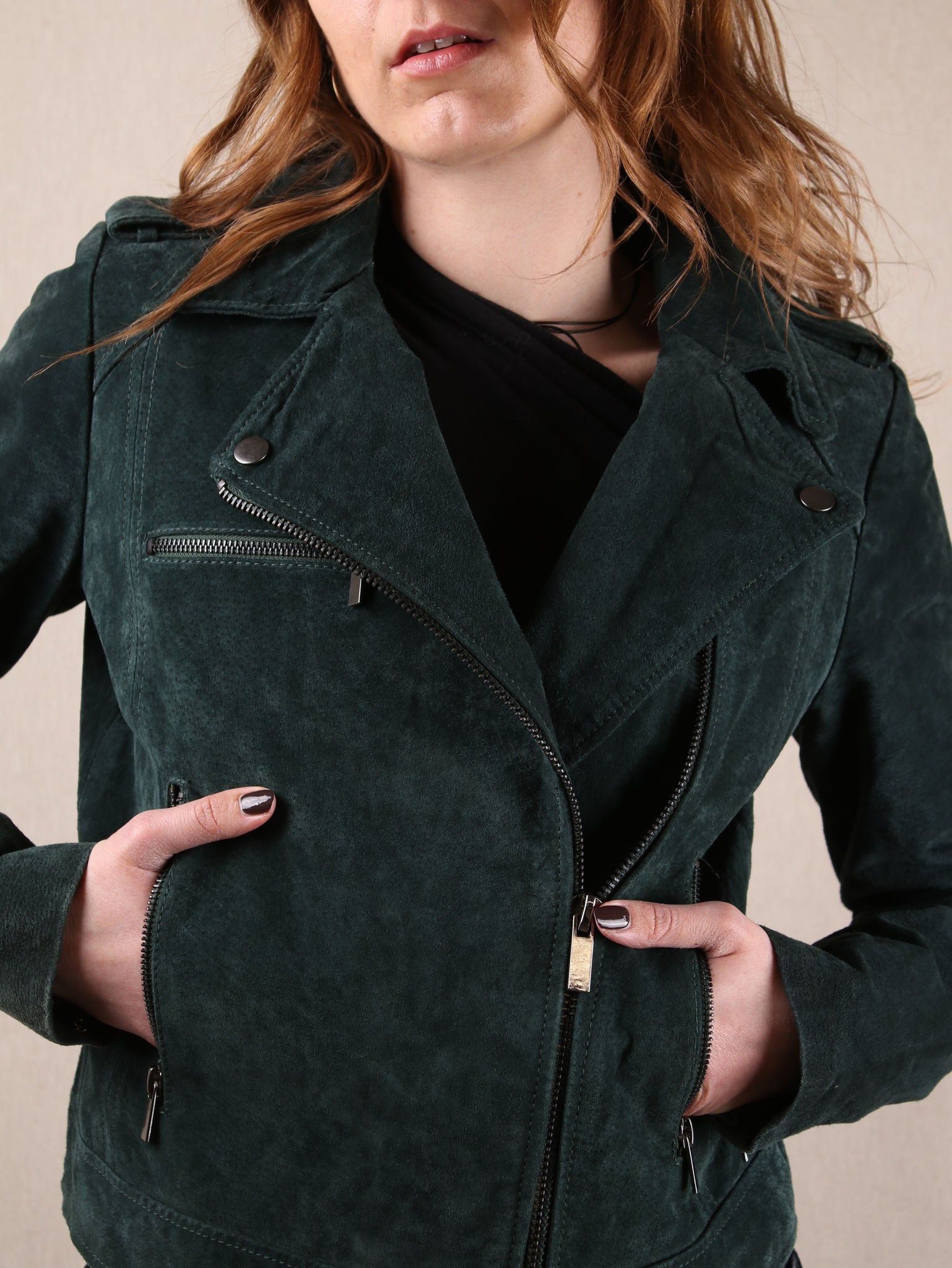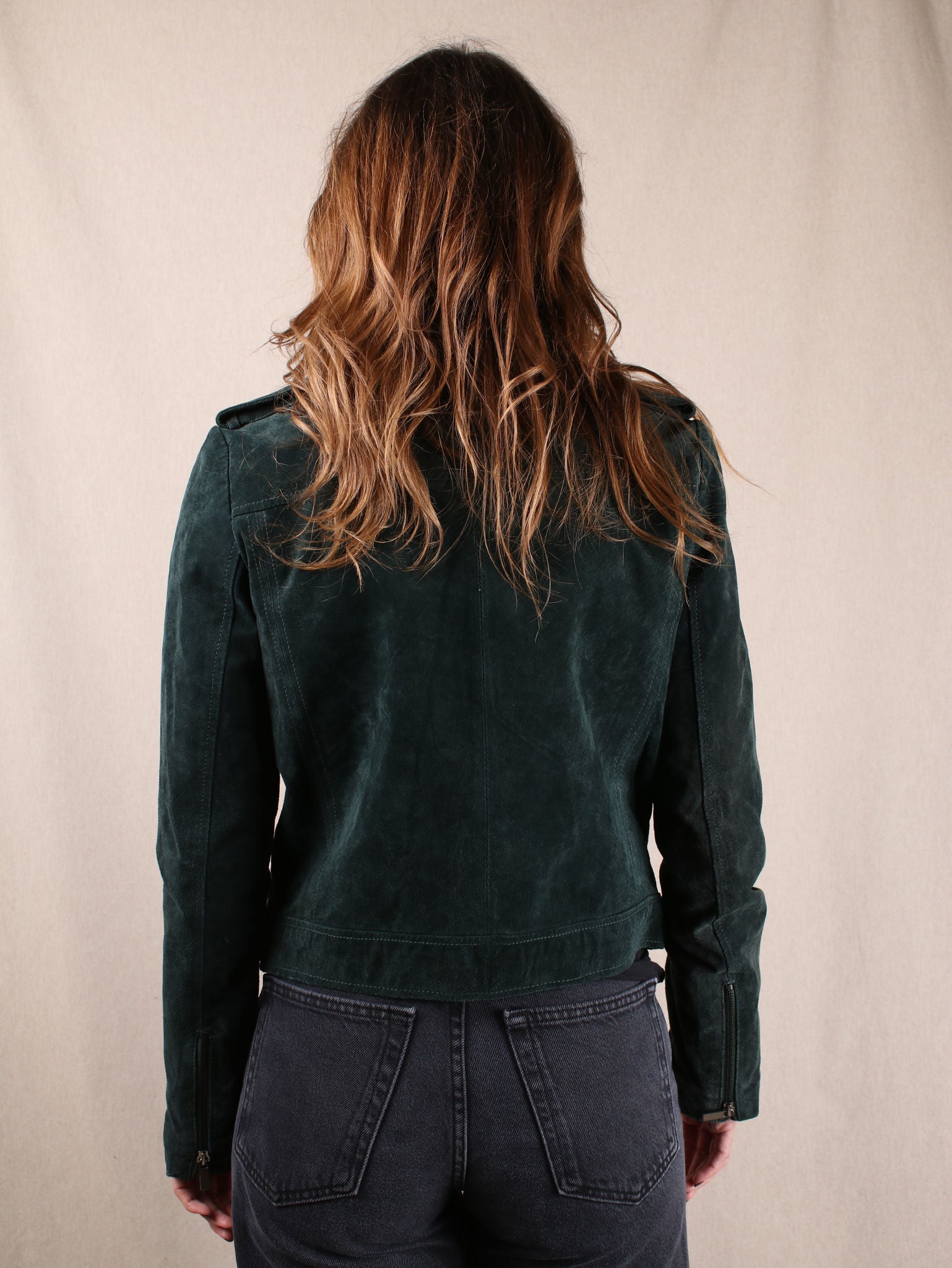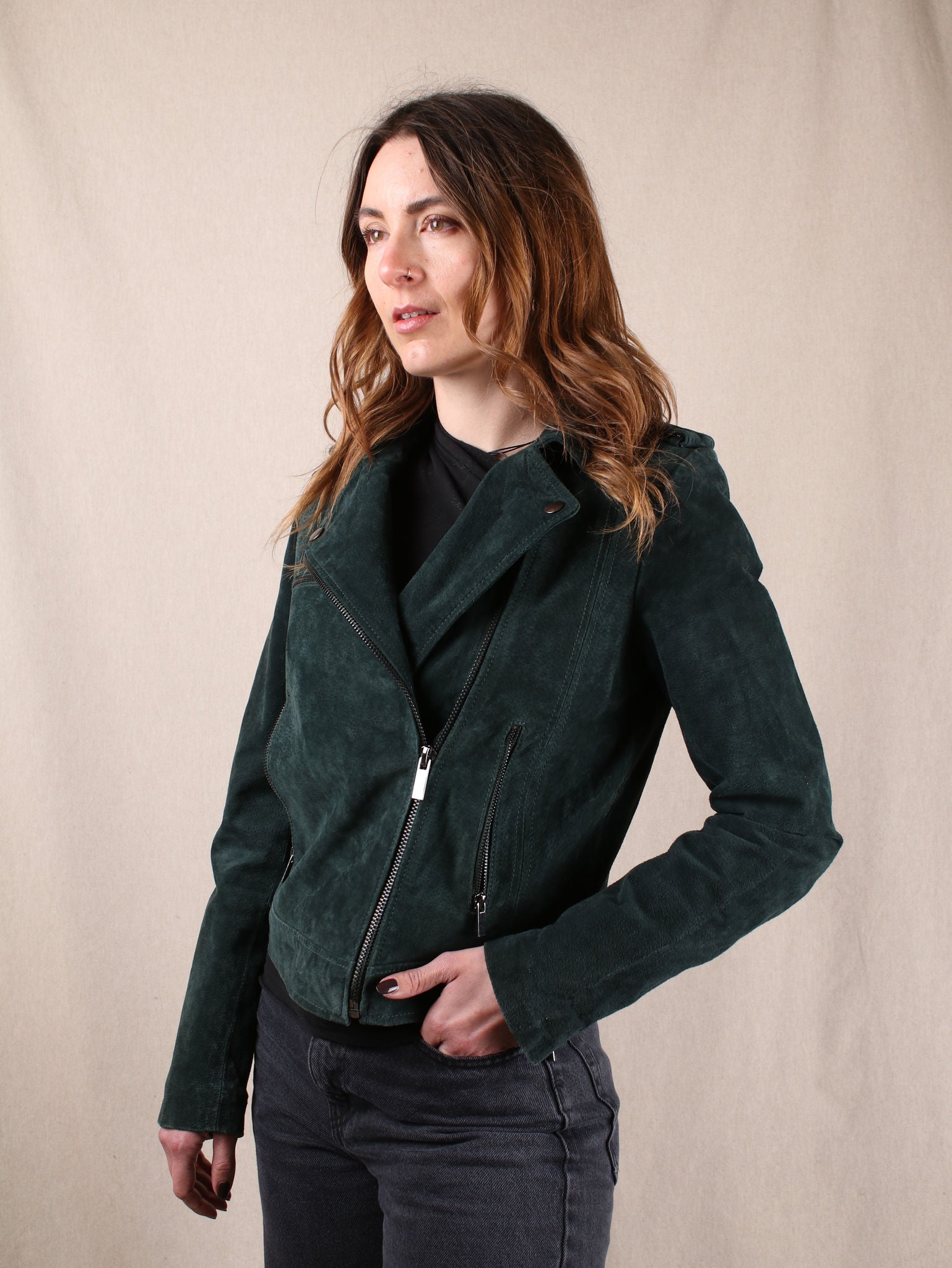 Secondhand Biker-Jacke aus Veloursleder von Mango.