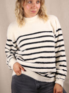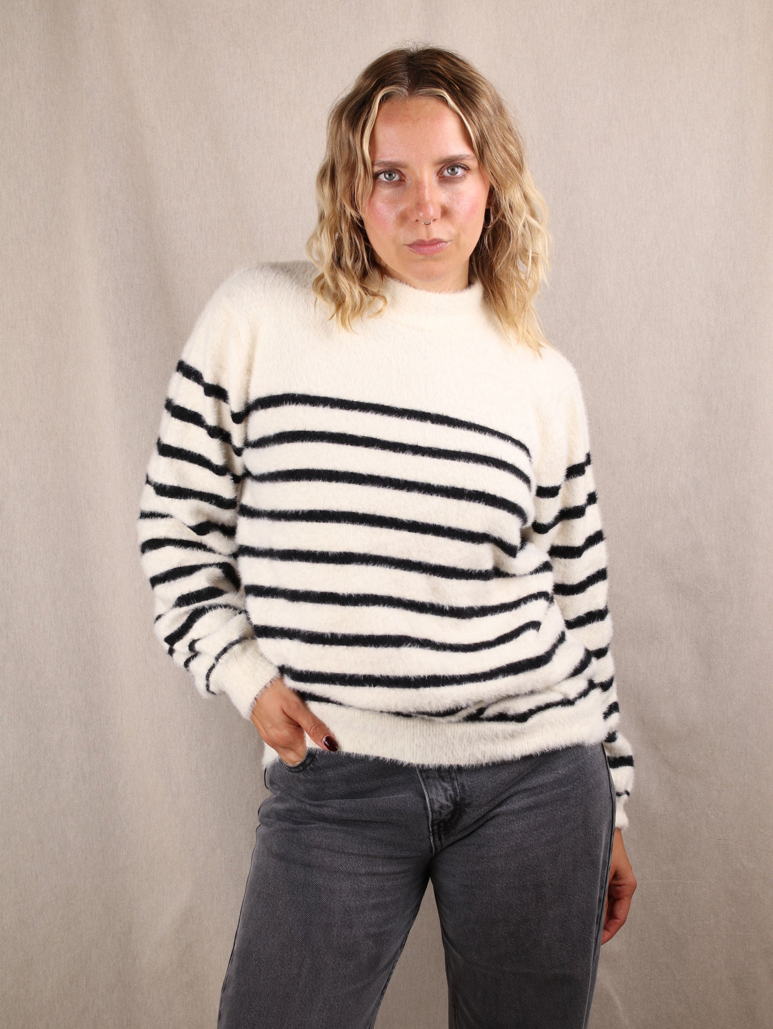 Der Artikel wurde gerne getragen, befindet sich aber weiterhin in gutem Zustand. Kleinere Gebrauchsspuren wie leichtes Pilling oder dezente Reparaturen können vorkommen, auffälligere Mängel listen wir selbstverständlich explizit auf.
