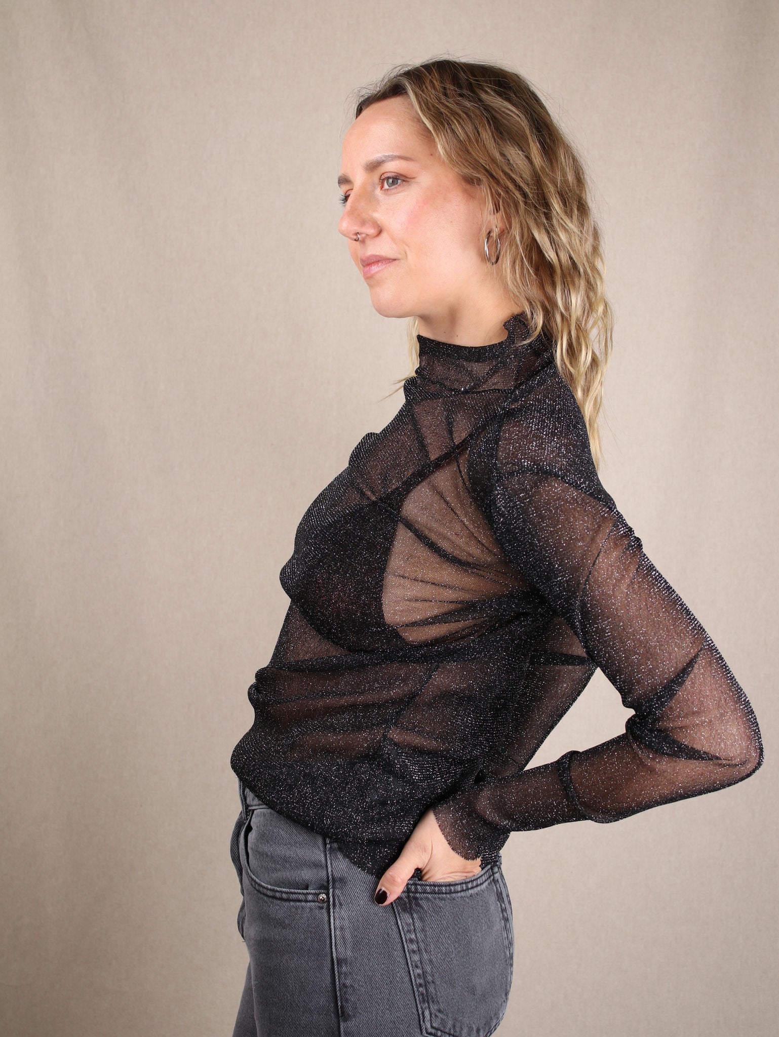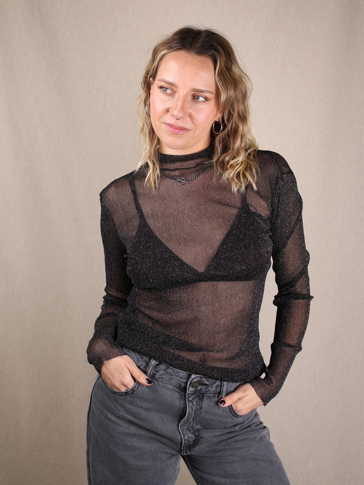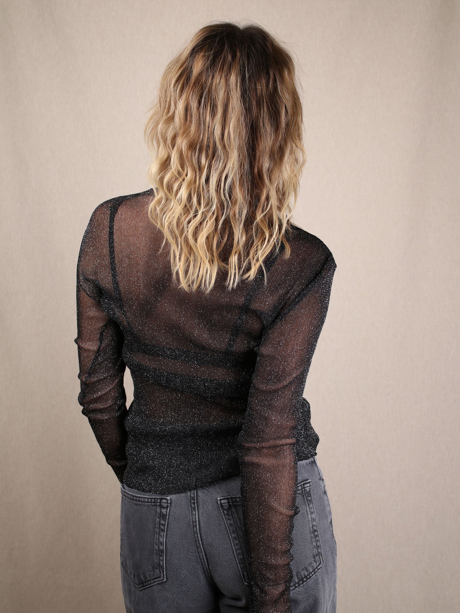 Mesh-Longsleeve mit Glitzer