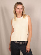 Dieser Secondhand Pullunder von Monki ist dein Shortcut zu einem coolen Retro-Vibe. Cremefarben und perfekt für Layering – ob Herbst, Winter, Frühling oder Sommer, du stylst ihn wie ein echter 70s-Pro.