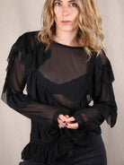 Mesh-Shirt mit Volants