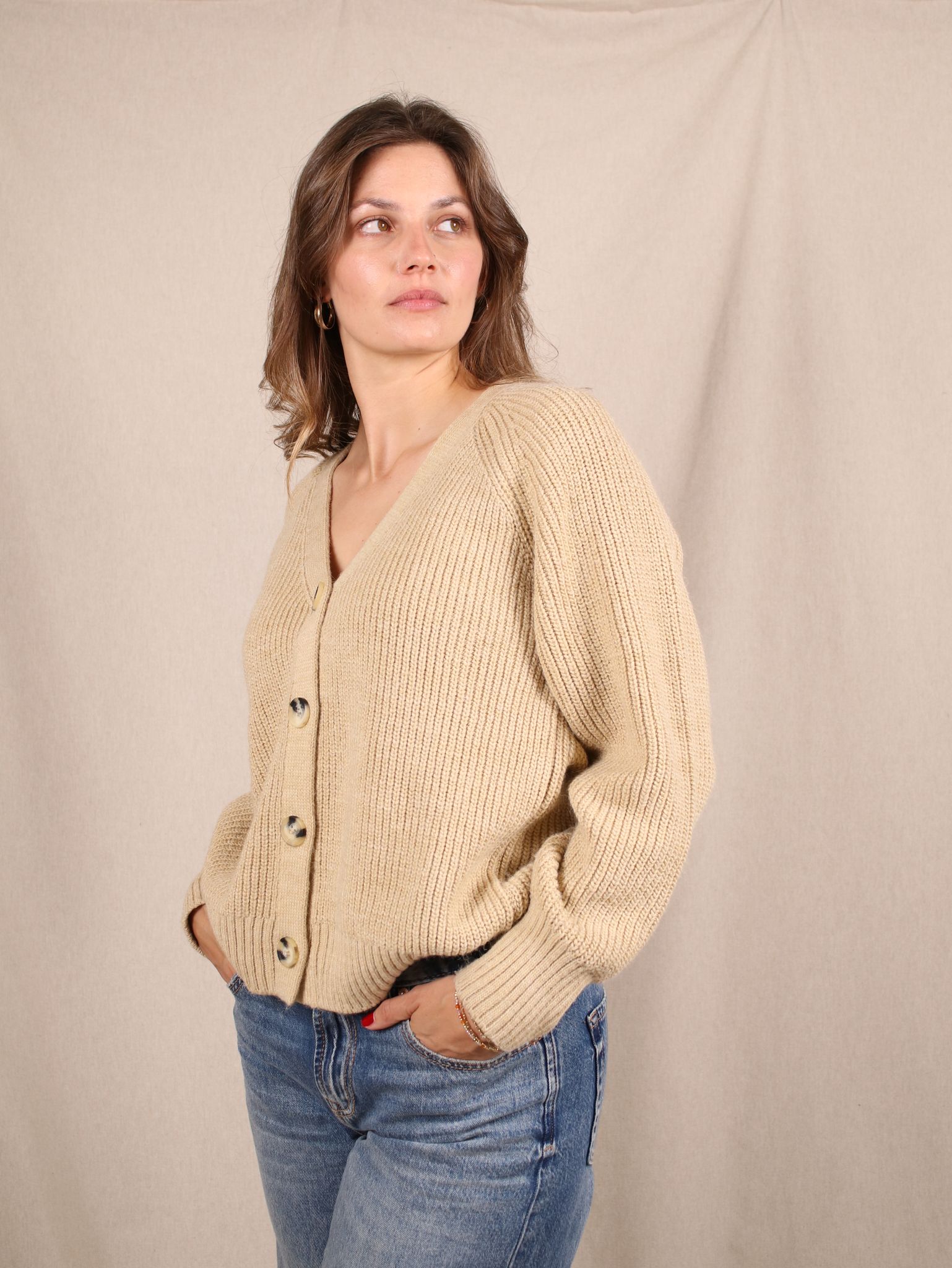 Dieser Cardigan von NA-KD bringt lässige 90s-Vibes in deinen Alltag – clean, cosy und cool. Der oversized Fit und das grobe Strickmuster machen ihn zum idealen Layering-Piece für herbstliche Looks. Ob zur High-Waist-Jeans oder über dein Lieblingskleid geworfen: ein echtes Basic mit Grunge-Charme, das nie aus der Mode kommt.