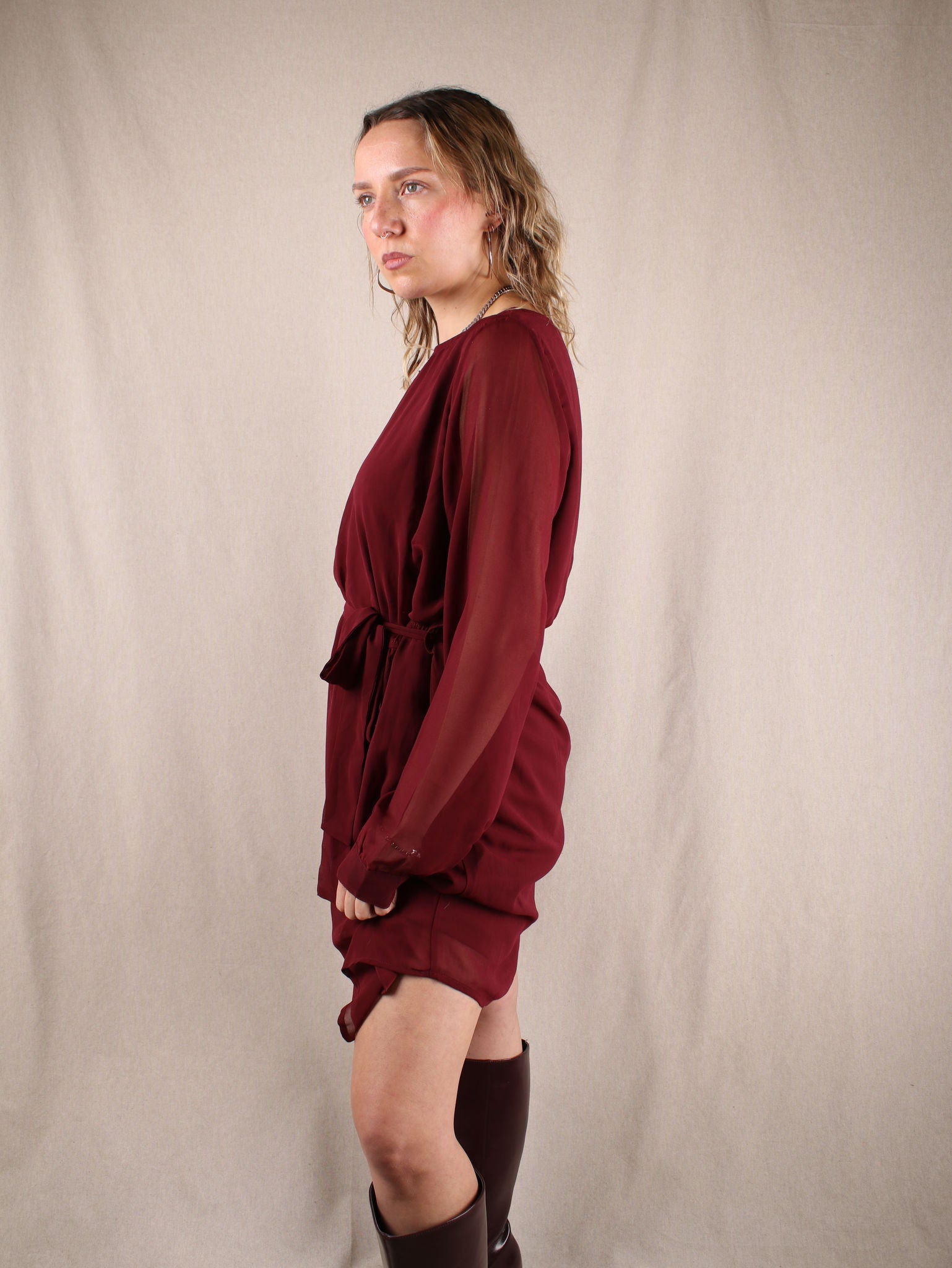 Secondhand Minikleid mit Gürtel von NA-KD in Bordeaux.