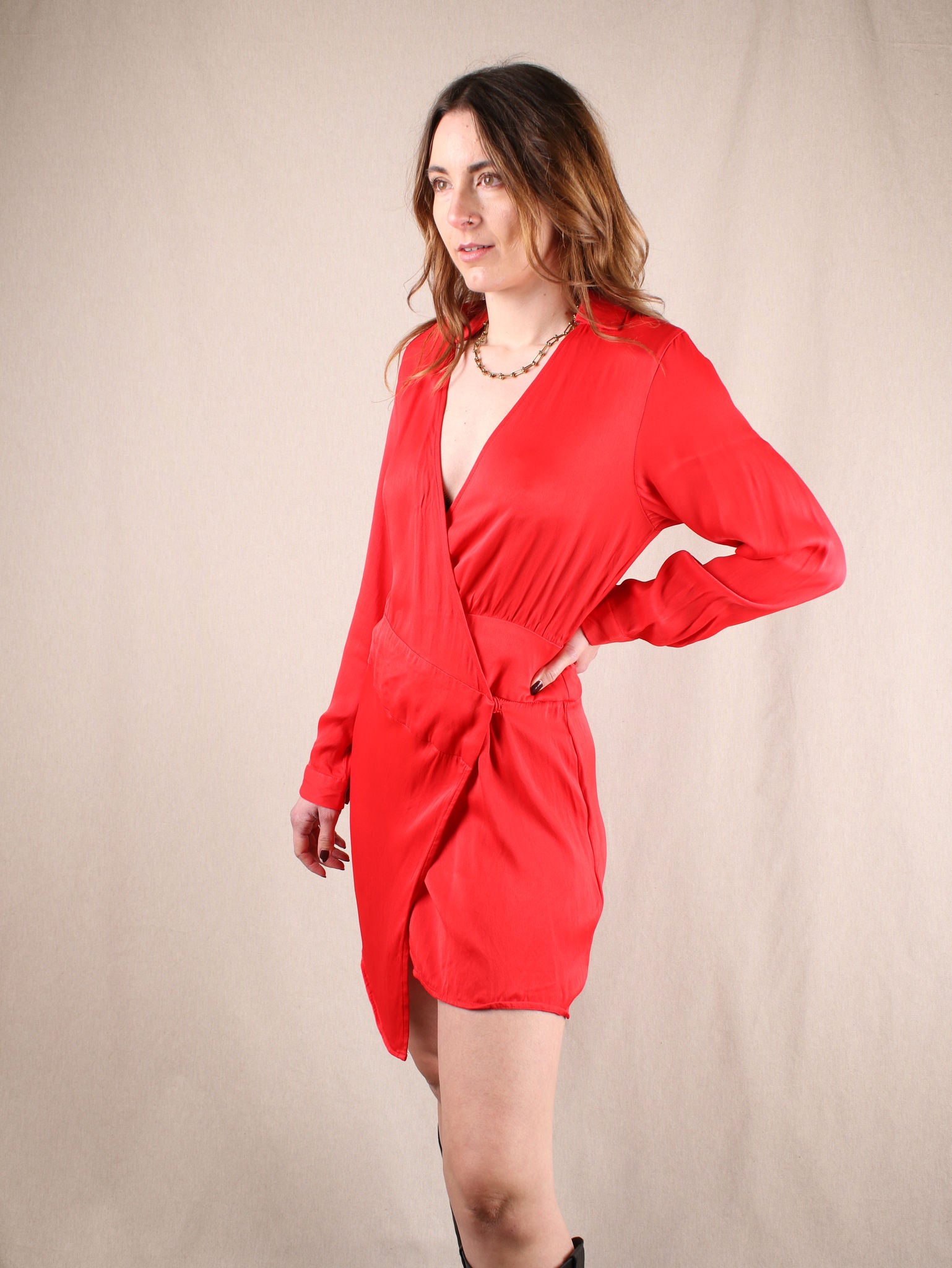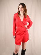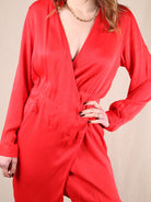 Asymmetrisches Secondhand Wickelkleid von NA-KD aus Satin in leuchtendem Rot.
