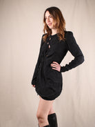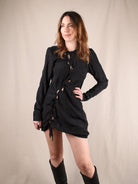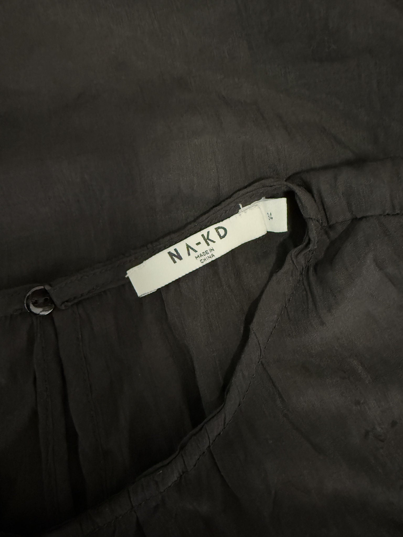 Secondhand Minikleid von NA-KD in Schwarz mit Crinkle-Effekt, langen Ärmeln und Cut Outs.