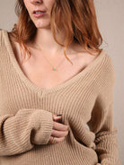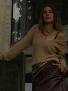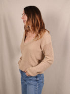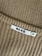Dieser beige Secondhand Pullover von NA-KD ist Notting Hill meets Boho Girl 2025. Lockerer Fit, tiefer V-Ausschnitt und chunky Strick aus reiner Baumwolle – cozy, lässig, effortlessly sexy.