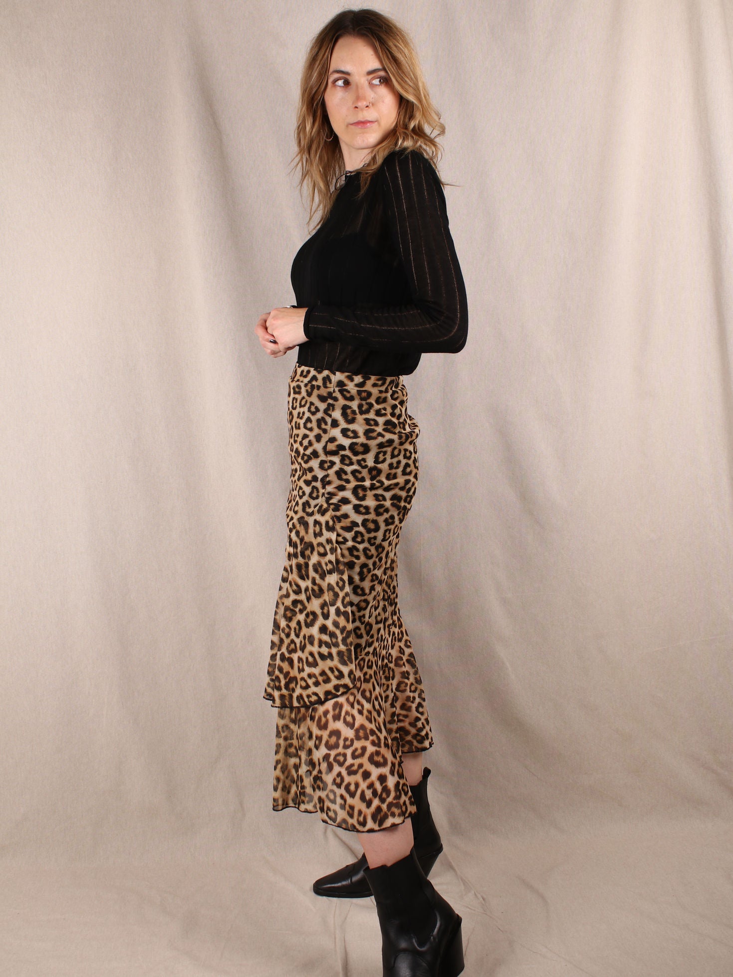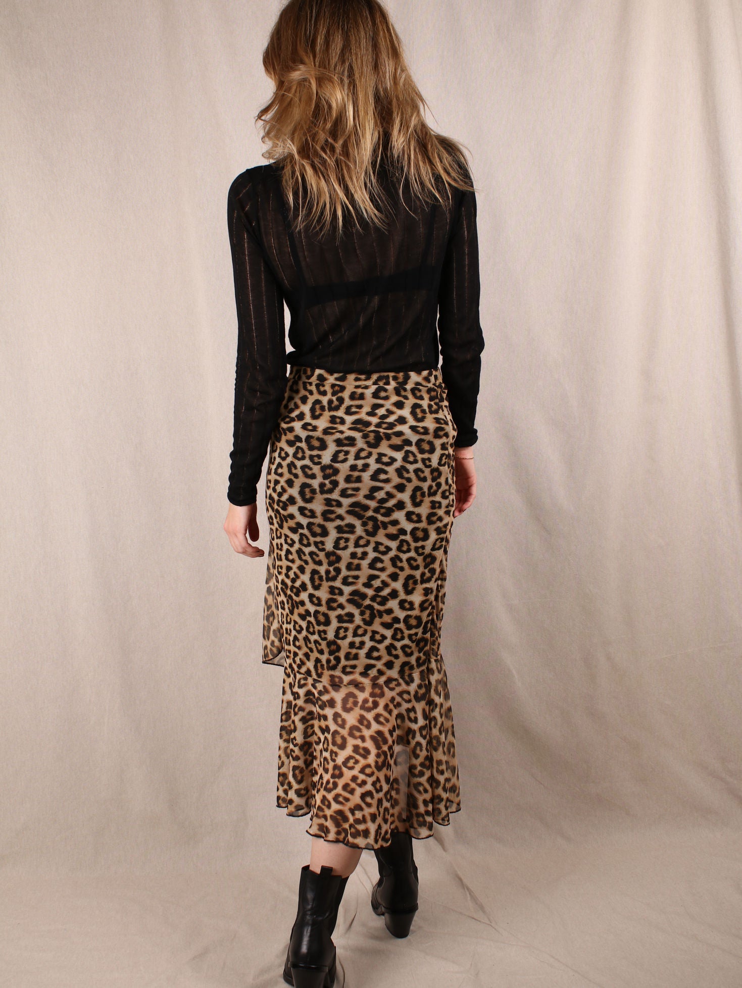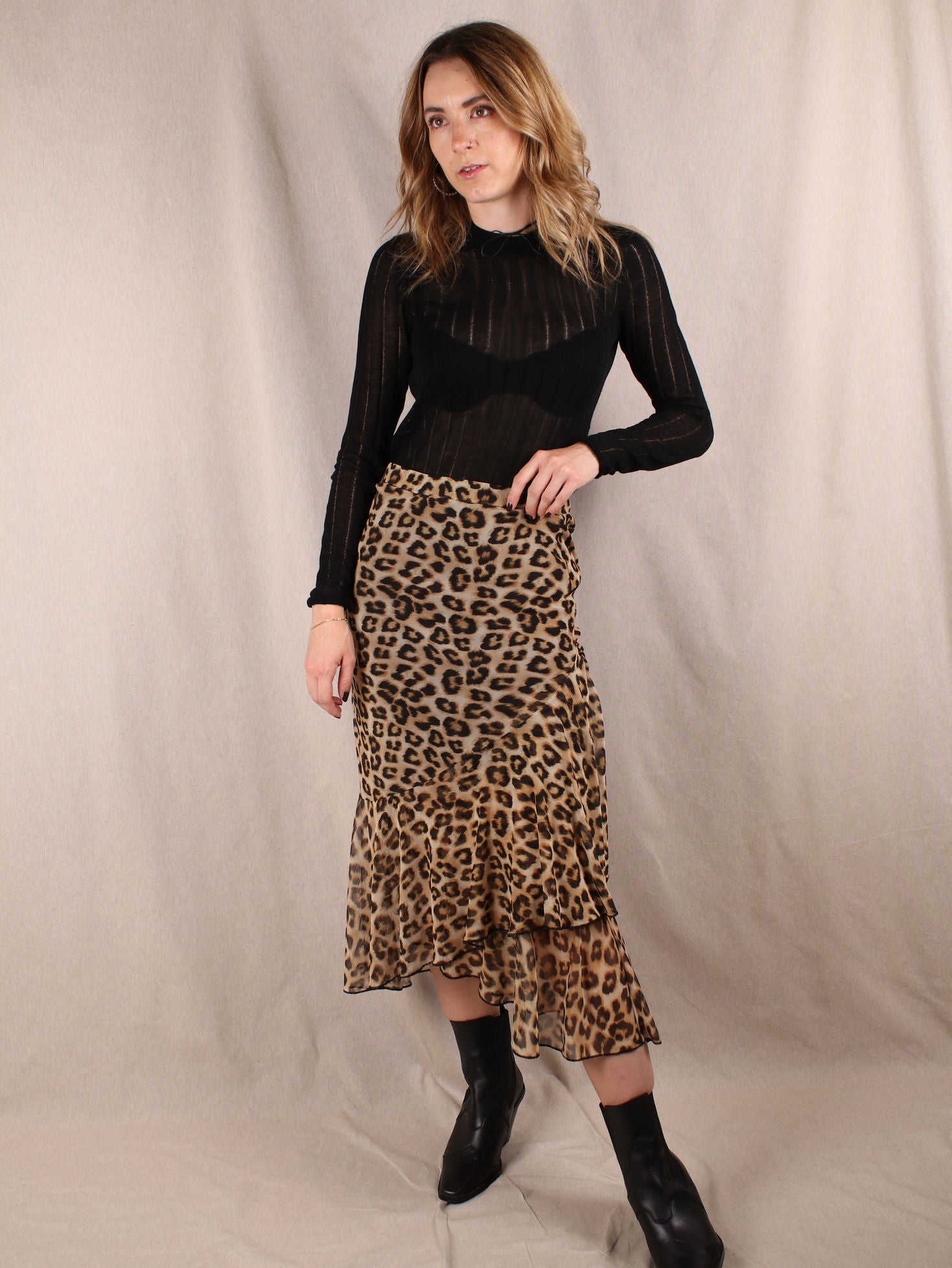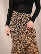 Secondhand Midirock aus Mesh von Nelly Trend mit Leo-Print und Volants