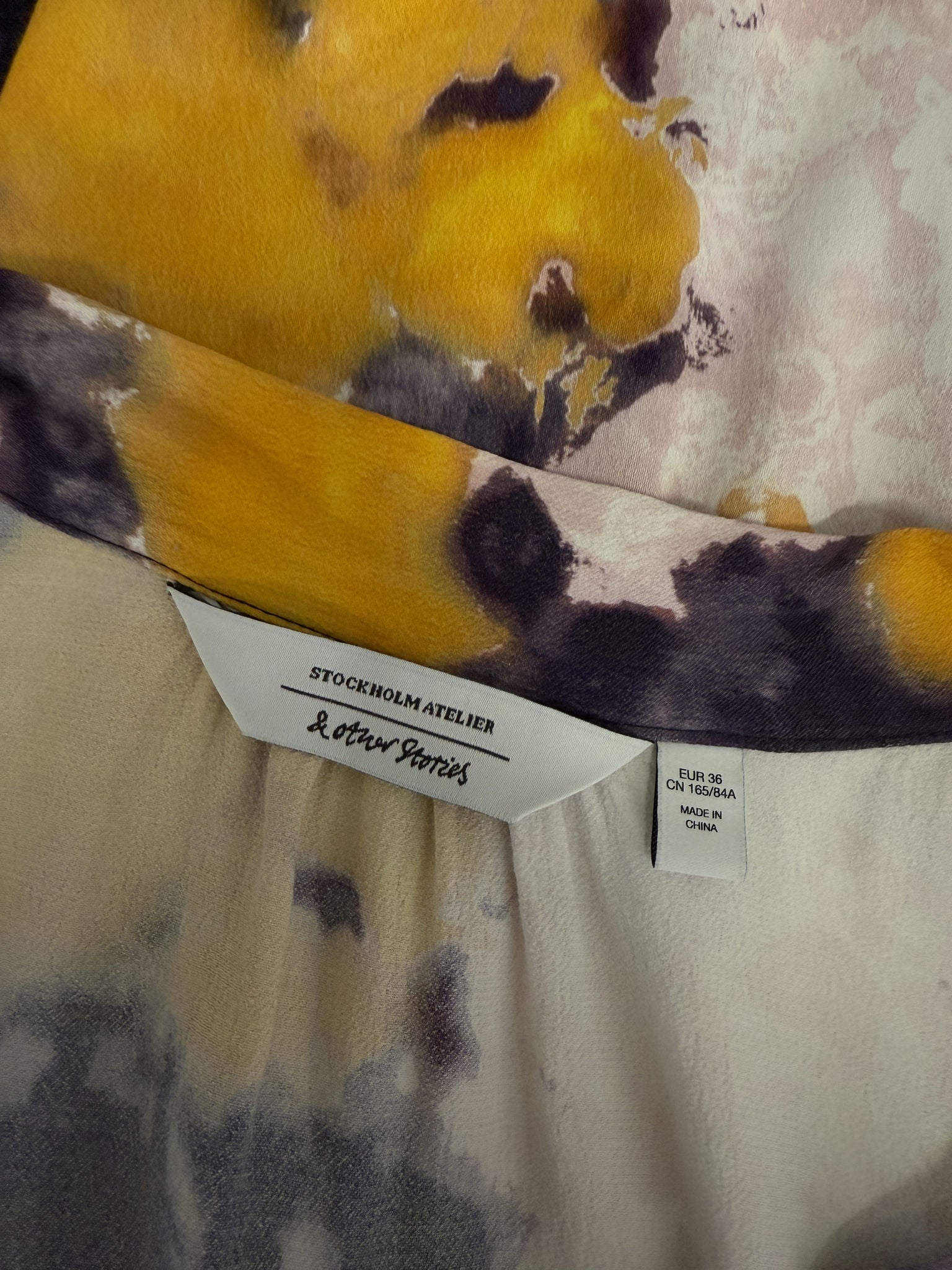 Schöne Oversize-Bluse von & Other Stories mit Watercolor-Print und Schluppe.