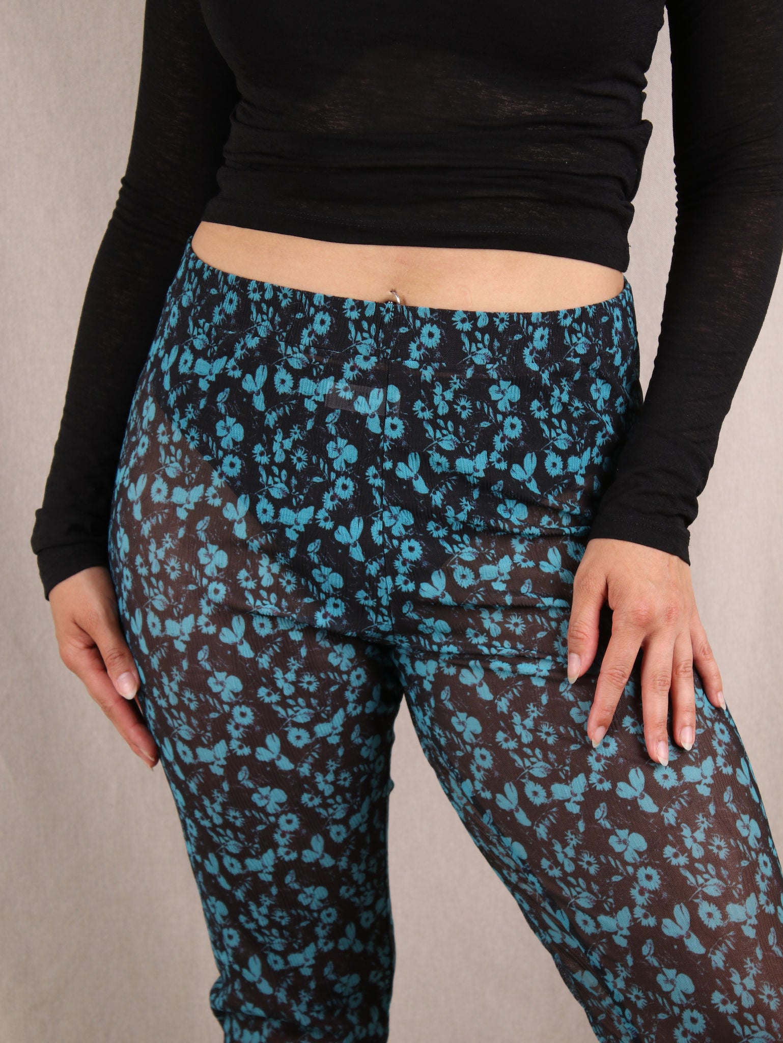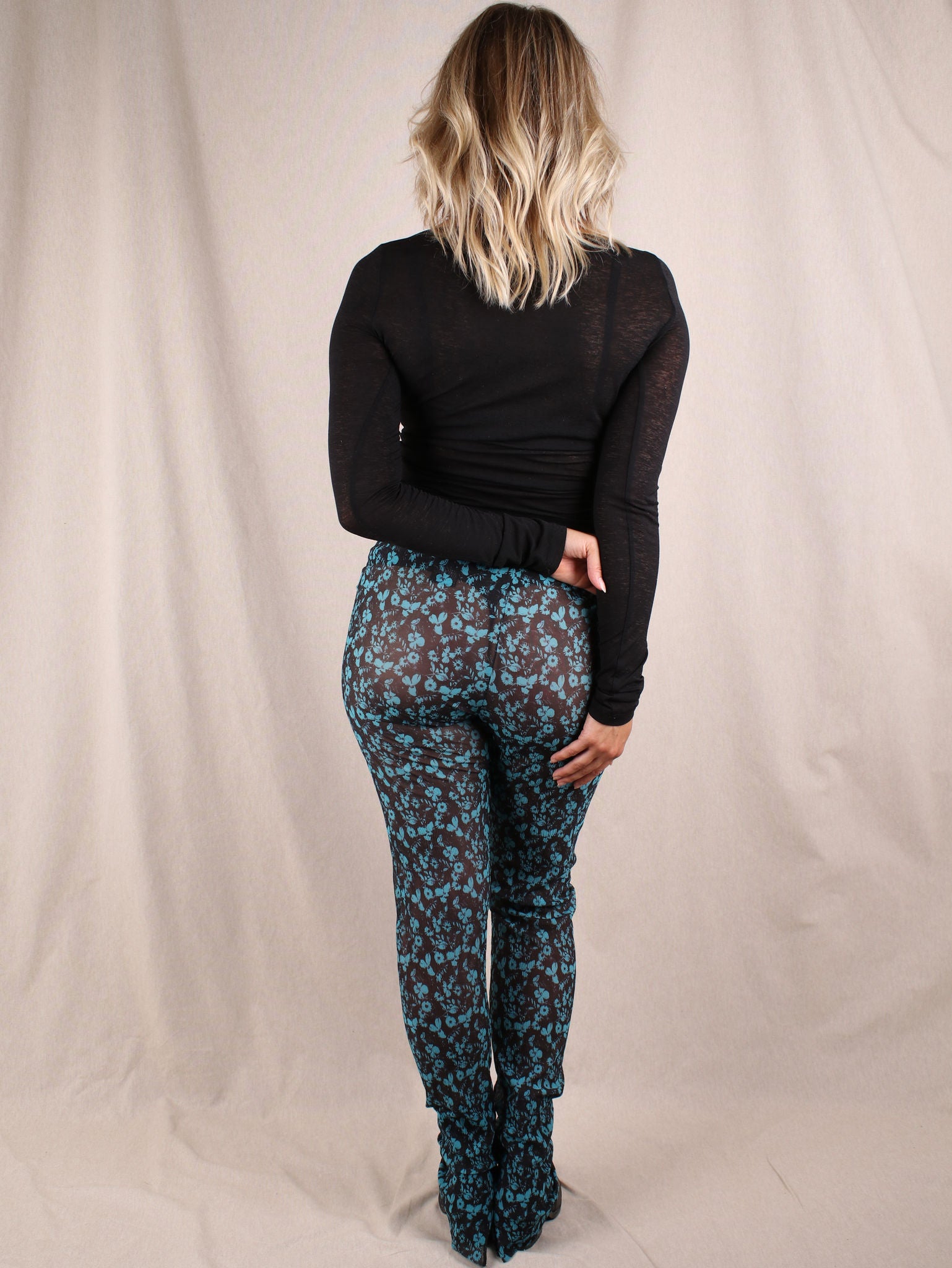 Semitransparente Hose aus Crêpe mit Flower-Print und Saumschlitz