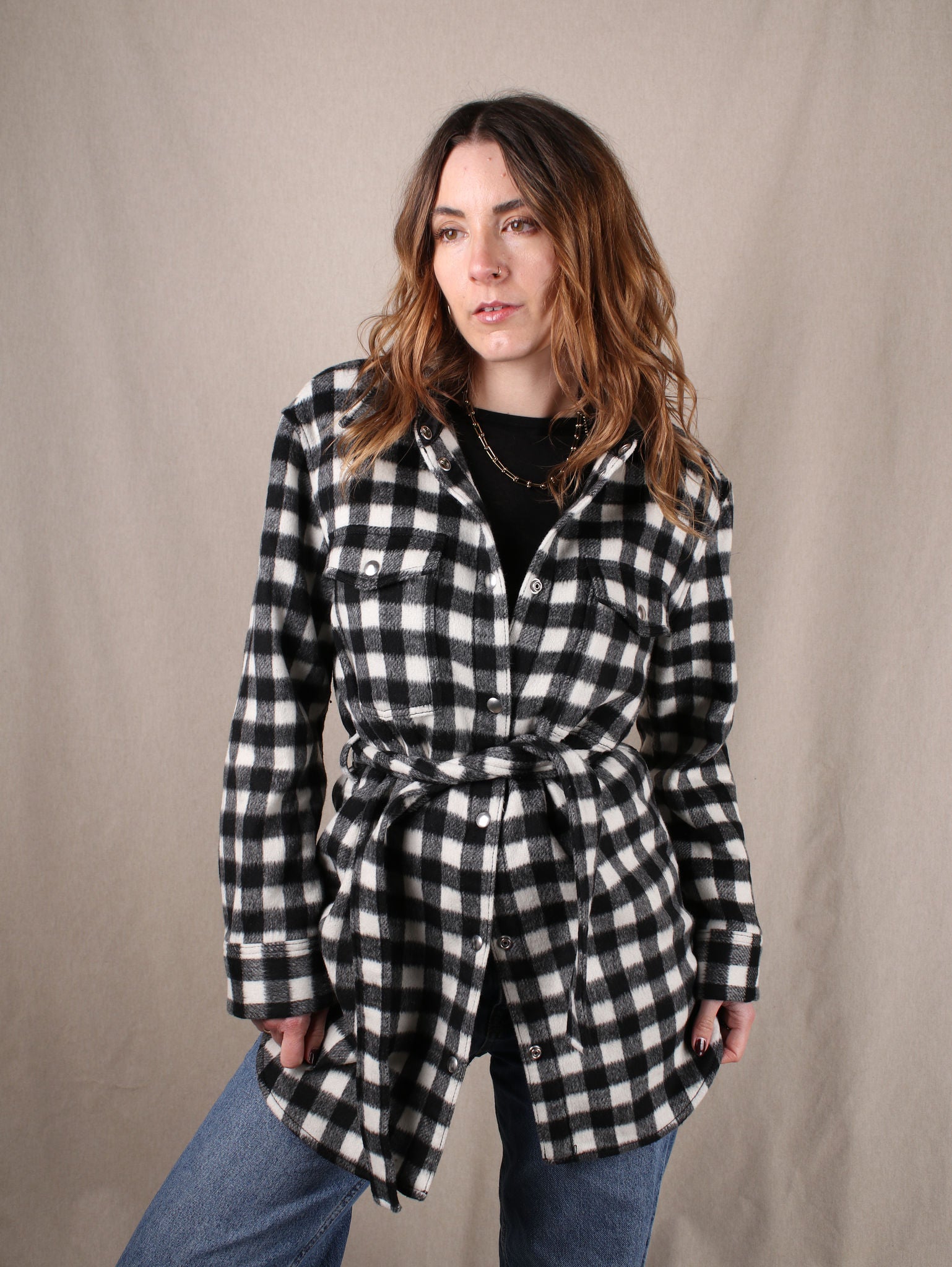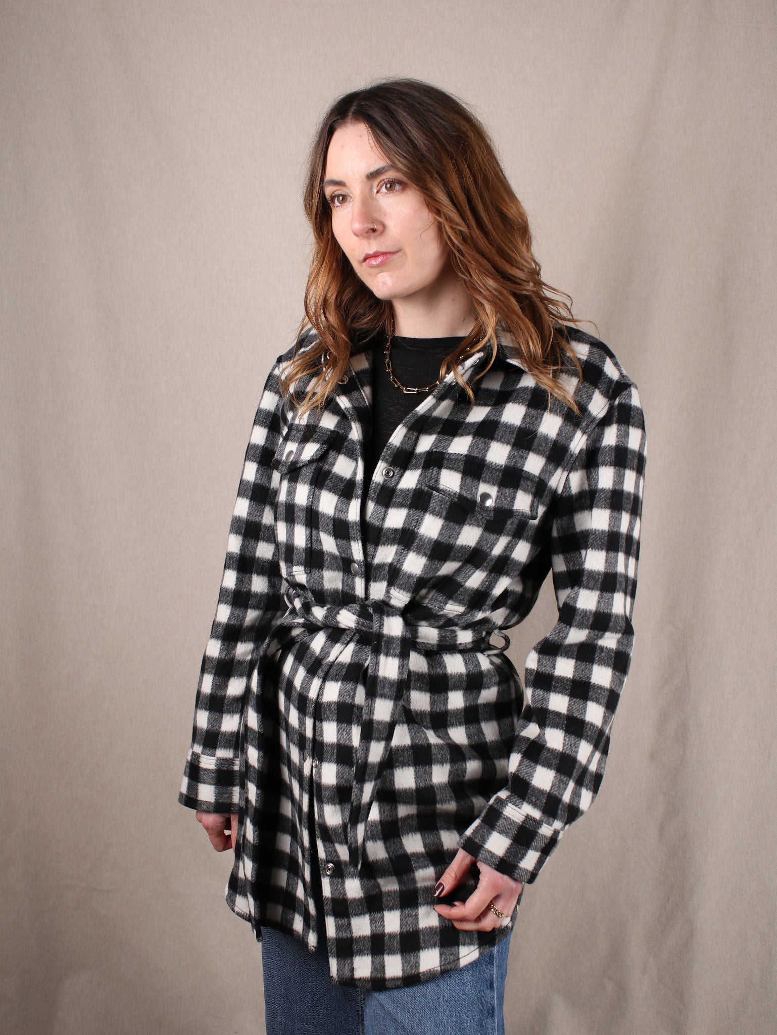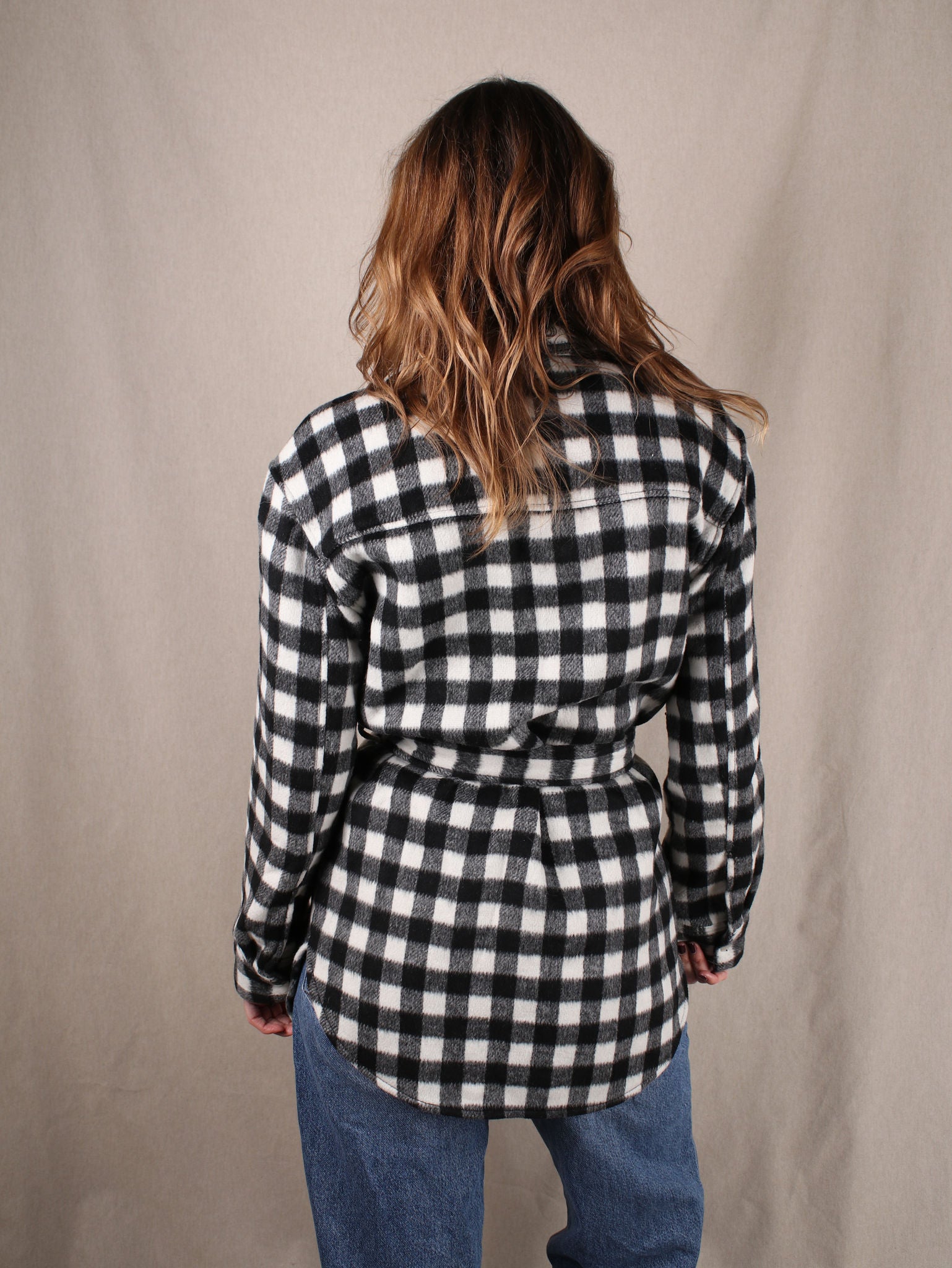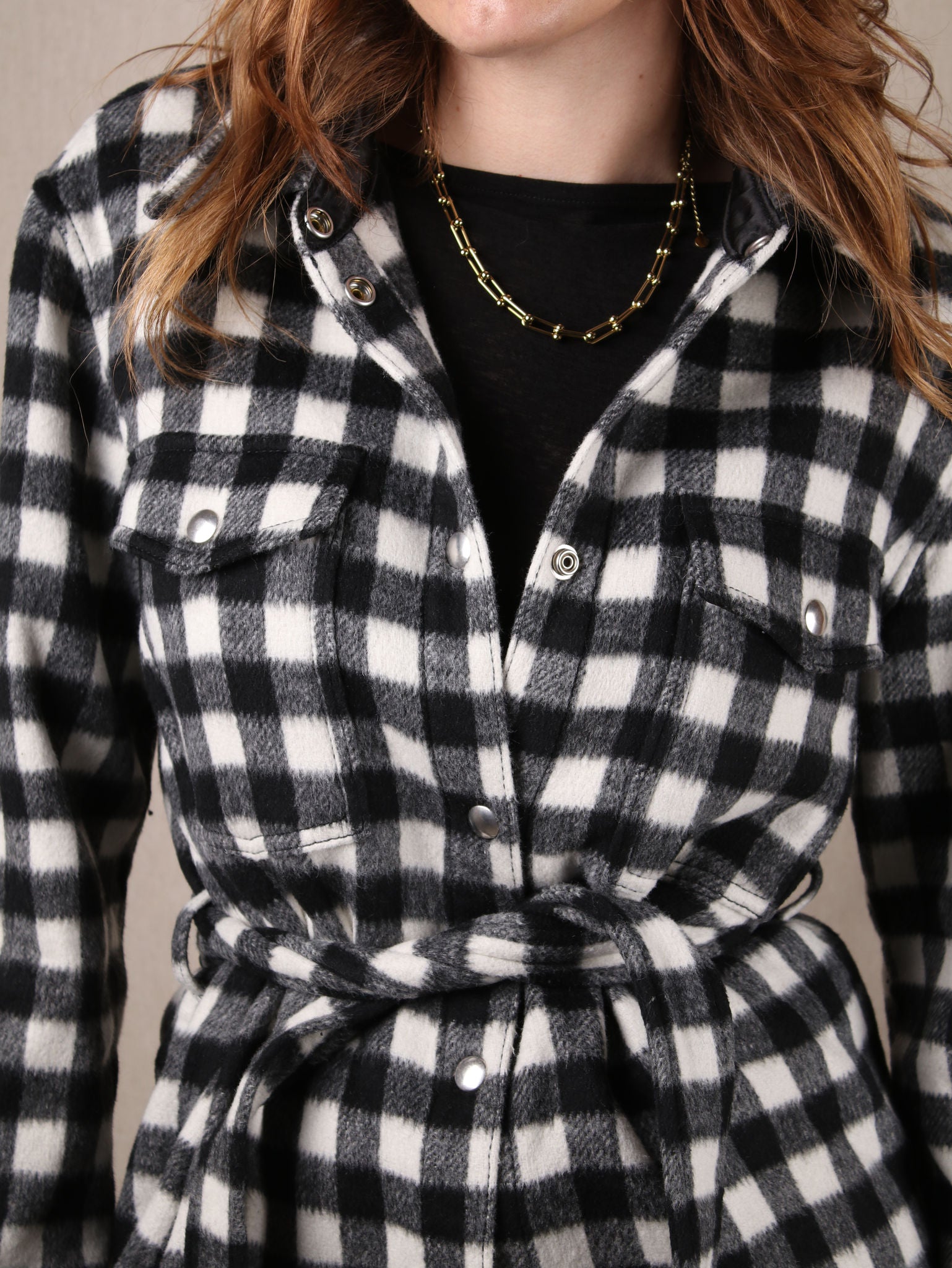 Shacket aus Woll-Mischung mit RAFANELLI Wollstoff, Karo-Muster und Tailliengürtel