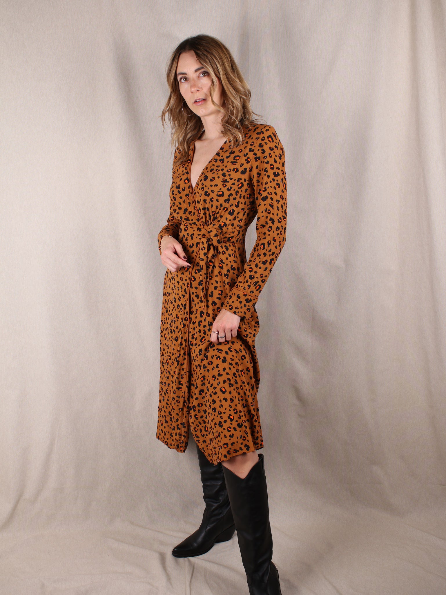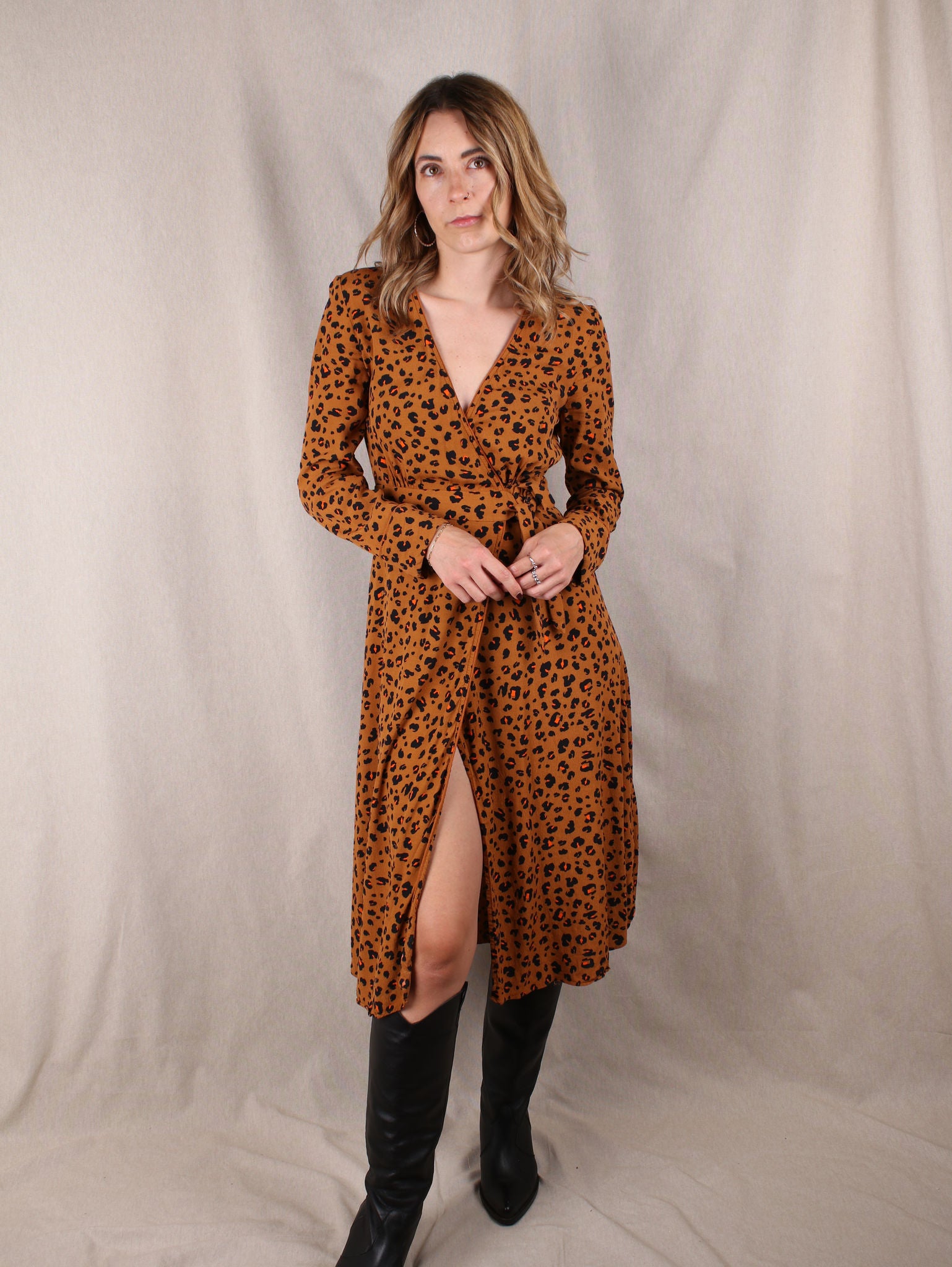 Midi-Wickel-Kleid mit Leo-Print