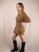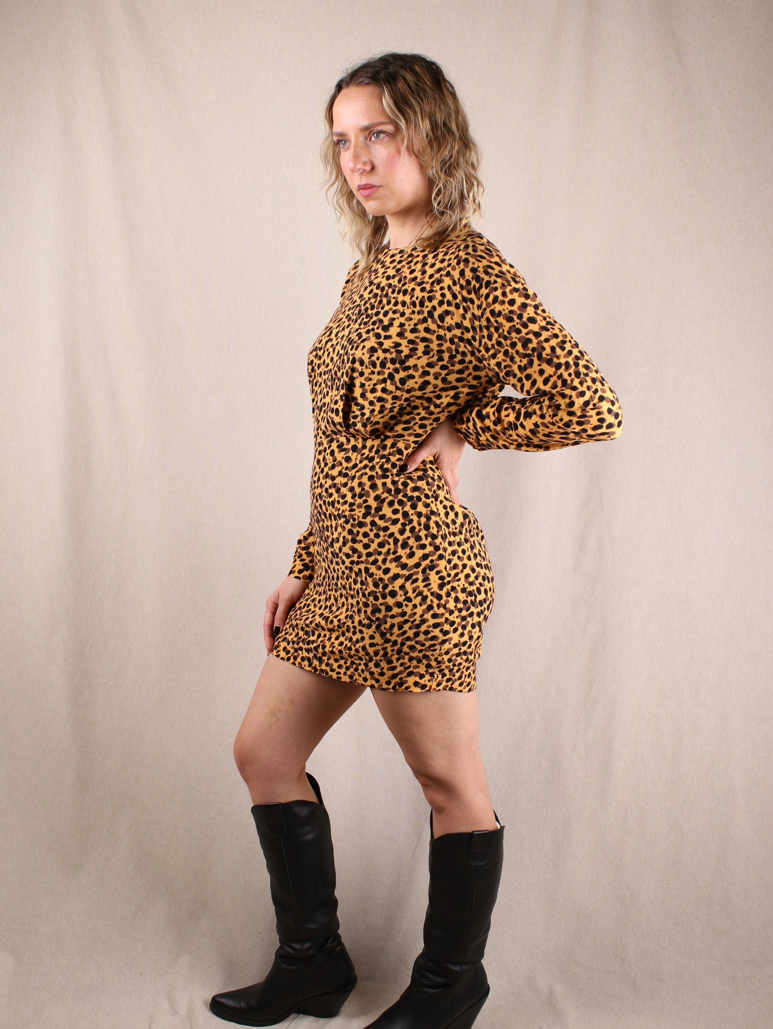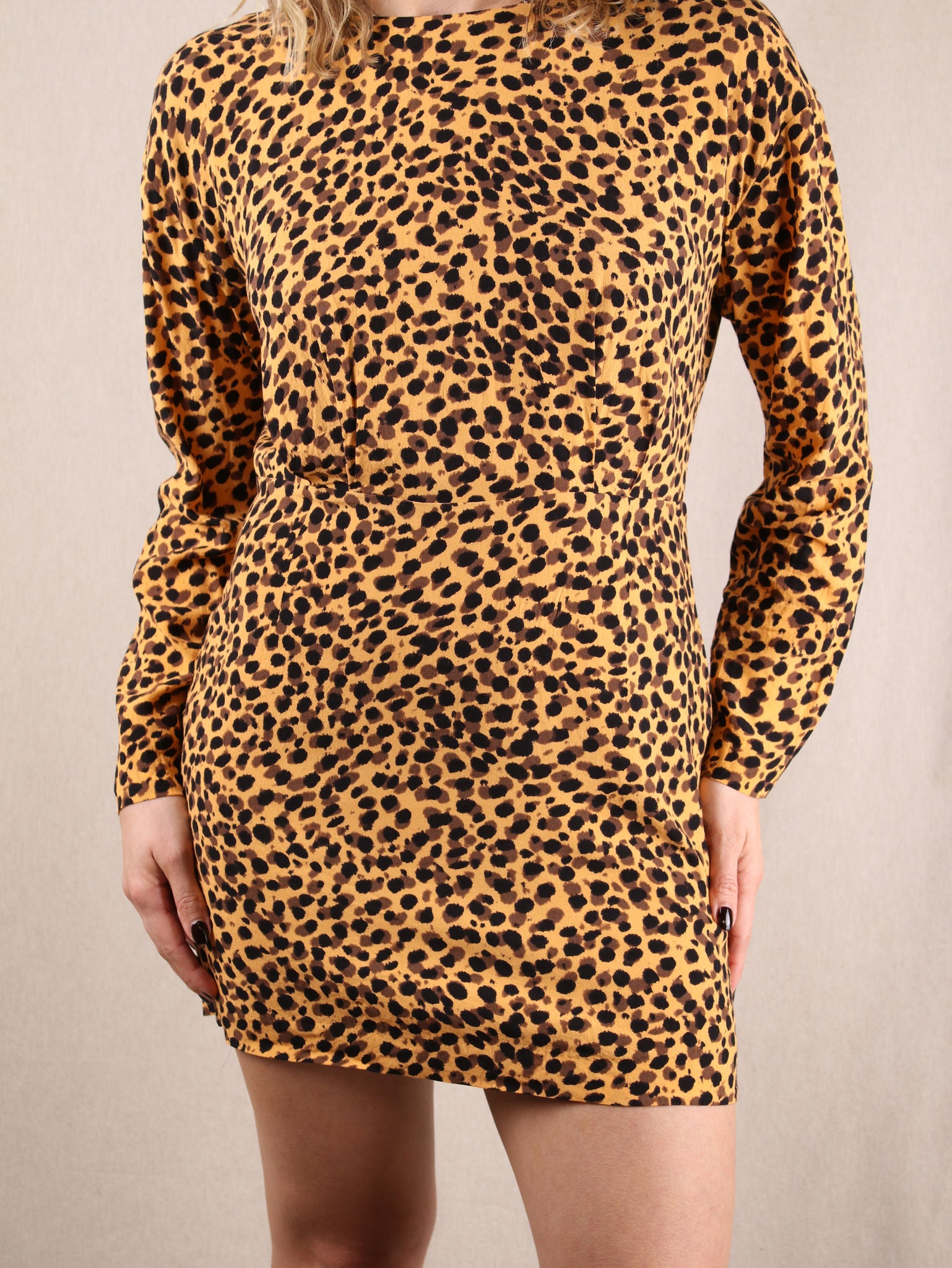 Kurzes Secondhand Kleid von & Other Stories in Größe 38 mit Leo-Print, eng anliegendem Rock-Teil und Cut Out am Rücken.