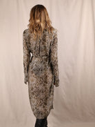 Dieses Kleid von & Other Stories bringt Snake-Print auf ein neues Level. Mit Schleifendetail, Taillengürtel und fließendem Crêpe-Stoff vereint es Animal Magnetism und Office Eleganz in einem. Der Olive-Ton bleibt classy, der Schnitt ist feminin – ein echtes Boho-70s-Piece mit City-Edge. Und das Beste: Secondhand bedeutet nicht nur Style, sondern auch Verantwortung.