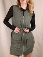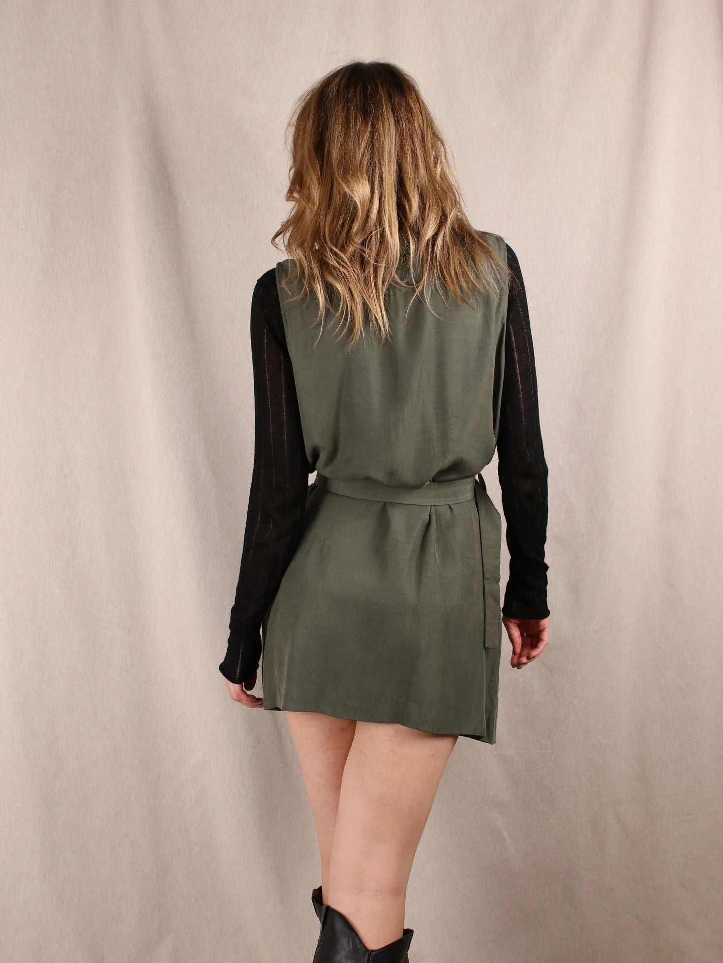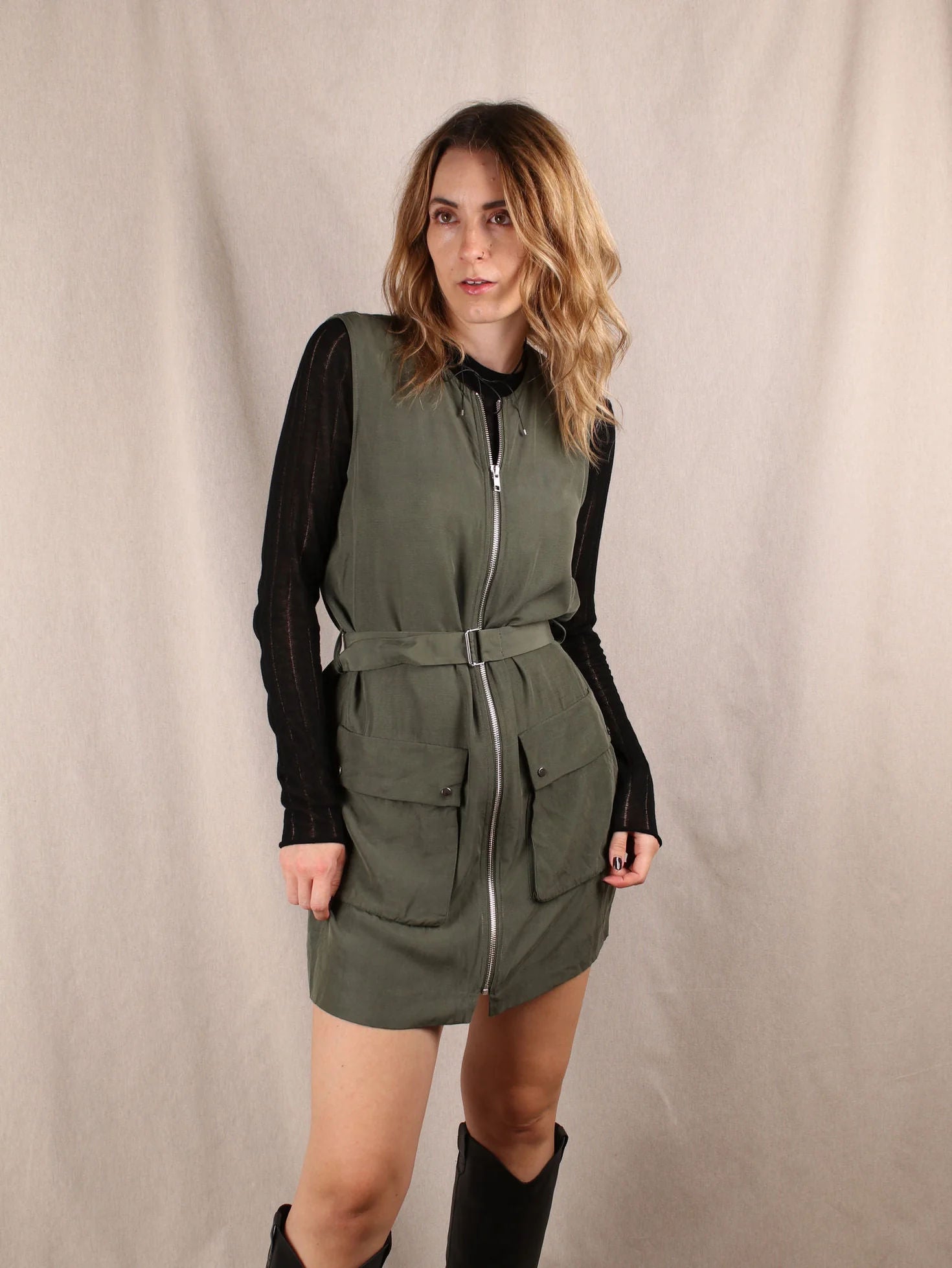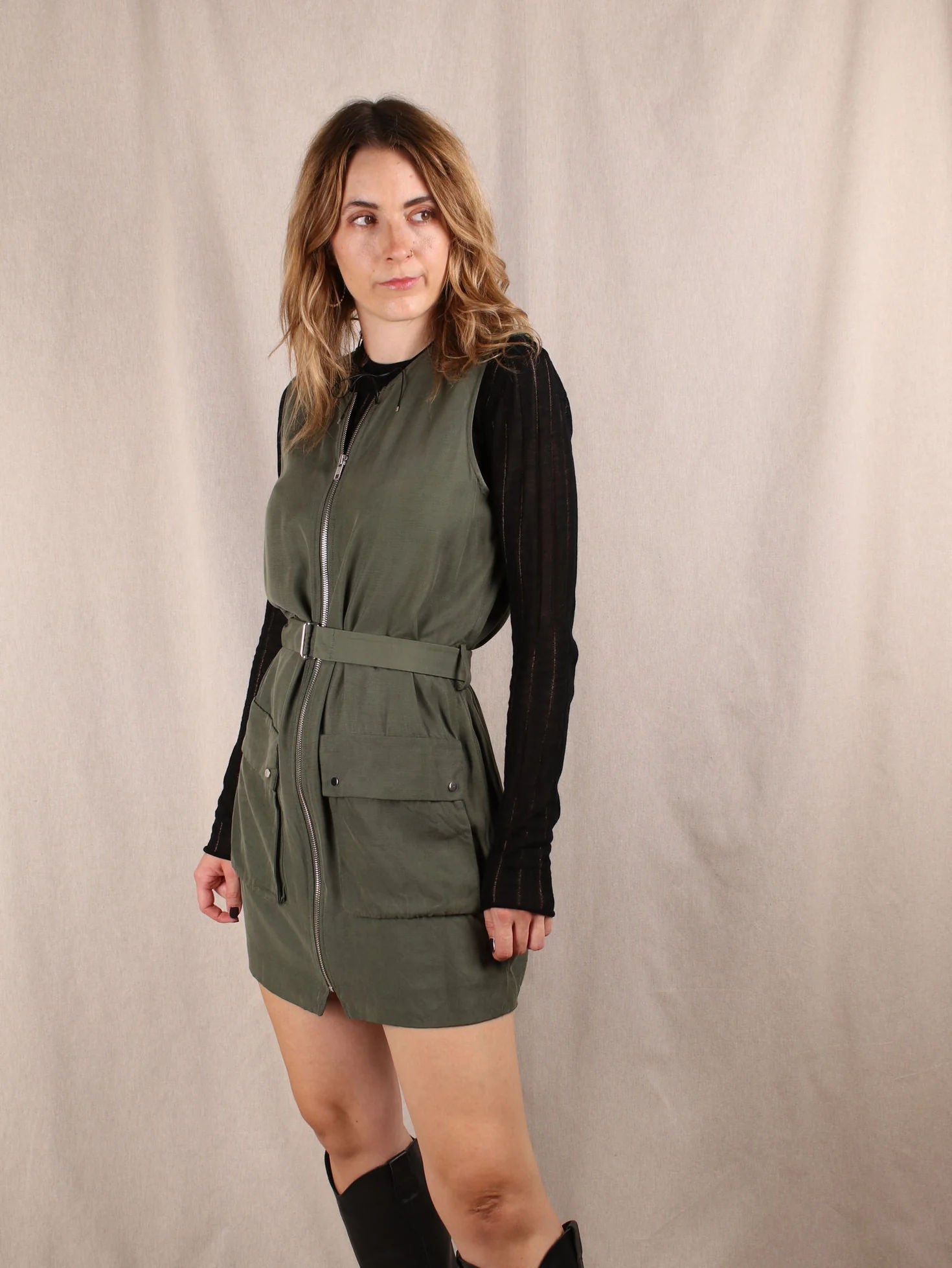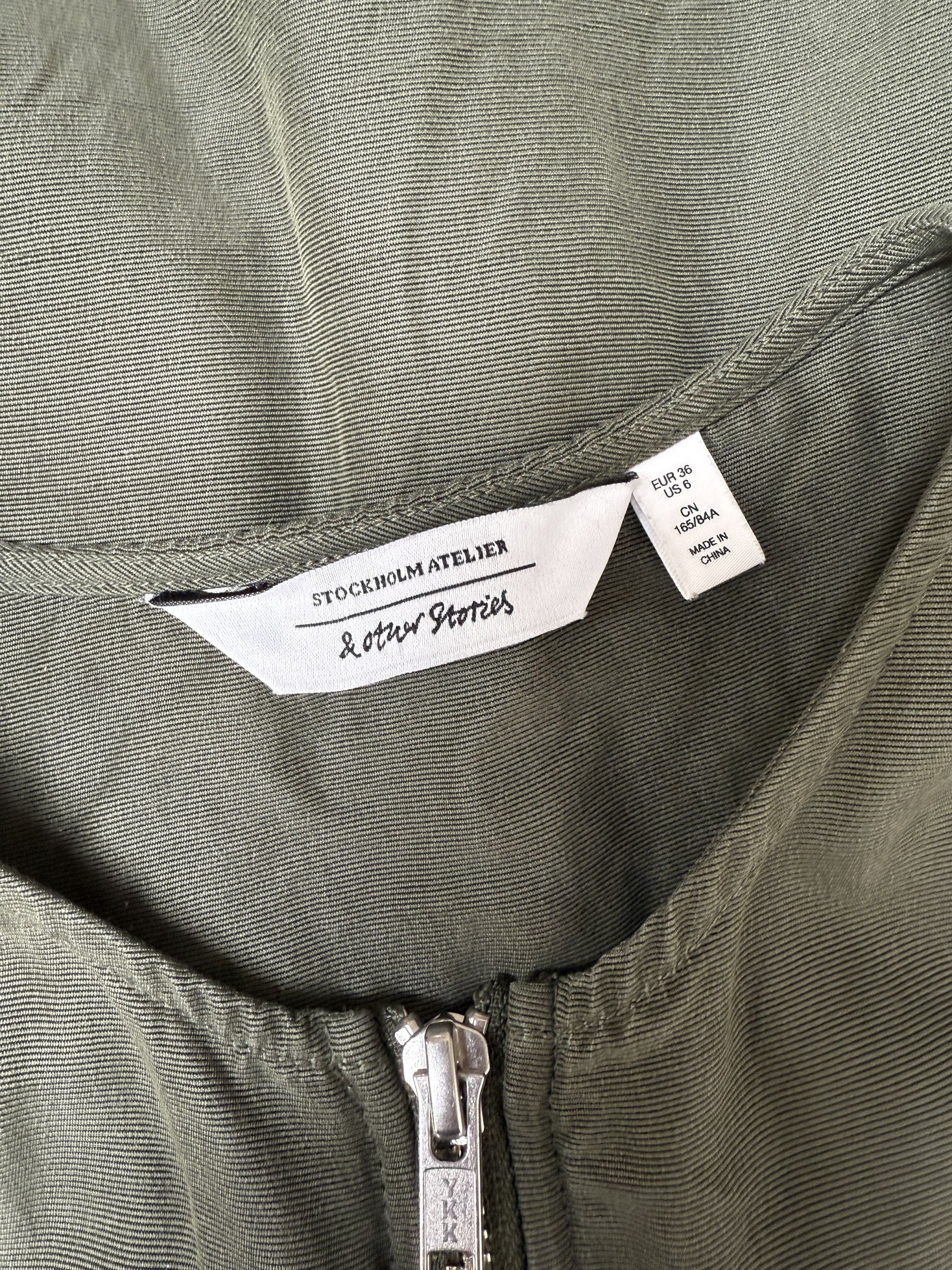 Secondhand Westen-Kleid aus Viskose und Cupro in Ripp-Optik mit Taschen und Gürtel von & Other Stories