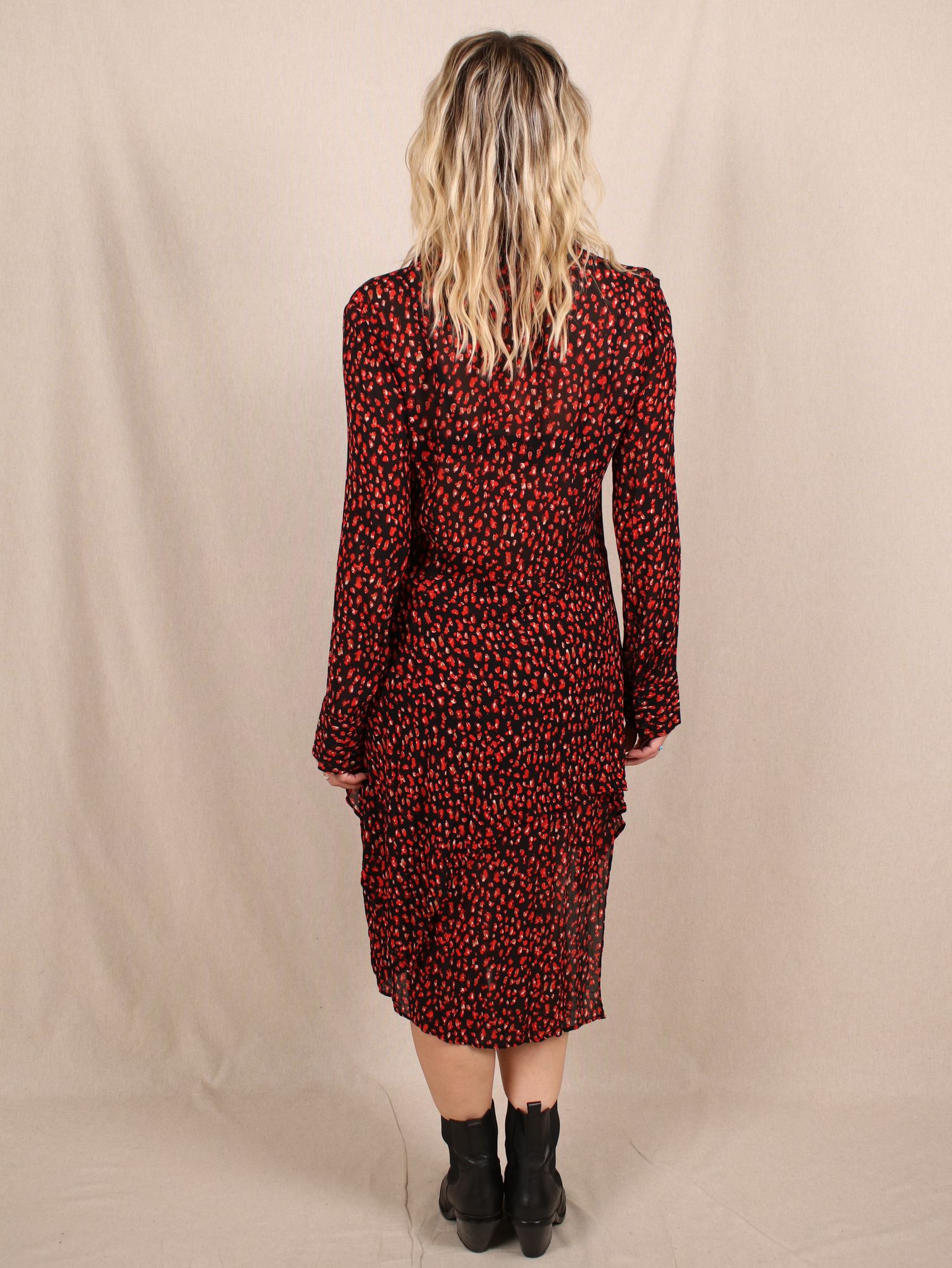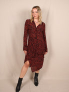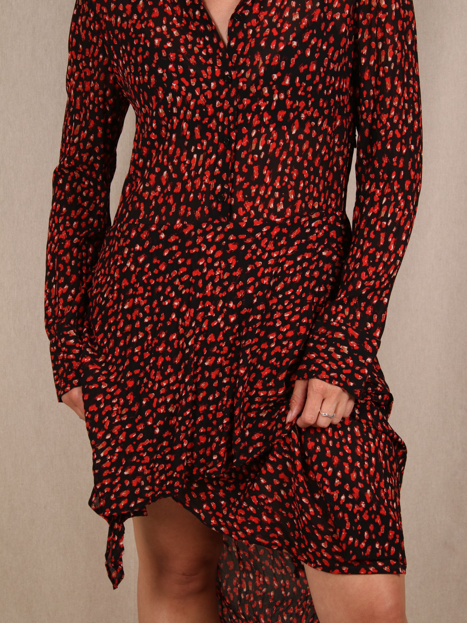 Dieses taillierte Crêpe-Kleid von & Other Stories ist dein eleganter Flirtpartner für Tag und Nacht. Mit fließender Viskose, langem Arm und einem verspielten Blumenmuster in Rot auf Schwarz bringt es Drama und Leichtigkeit in Einklang. Der asymmetrische Saum gibt dem Look Bewegung, der Hemdblusenkragen sorgt für Struktur. Ein Dress für Dates, Dinner & Daydreams.