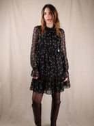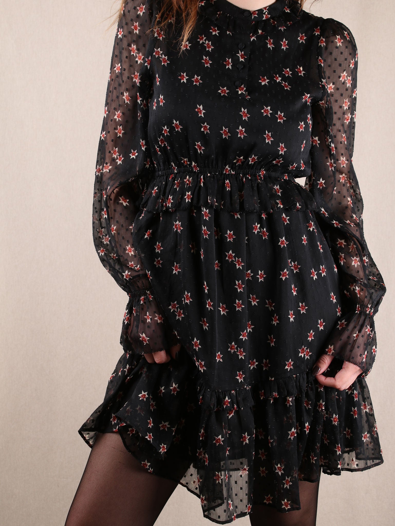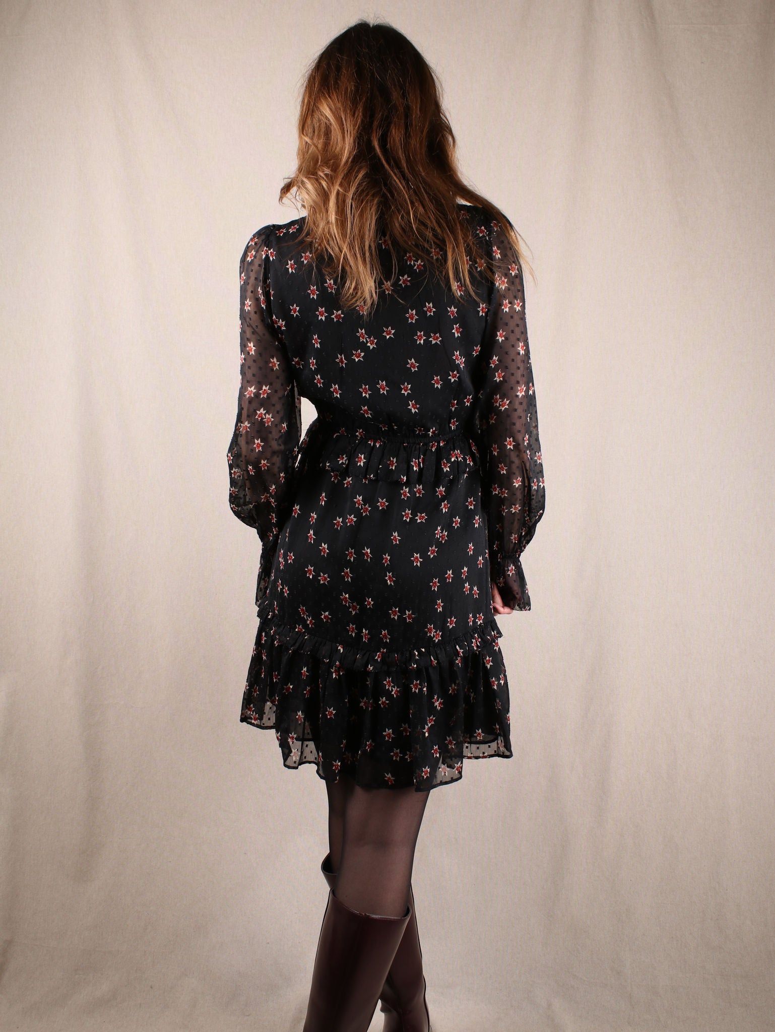 Kleid aus Fil Coupé mit Blumen und Rüschen
