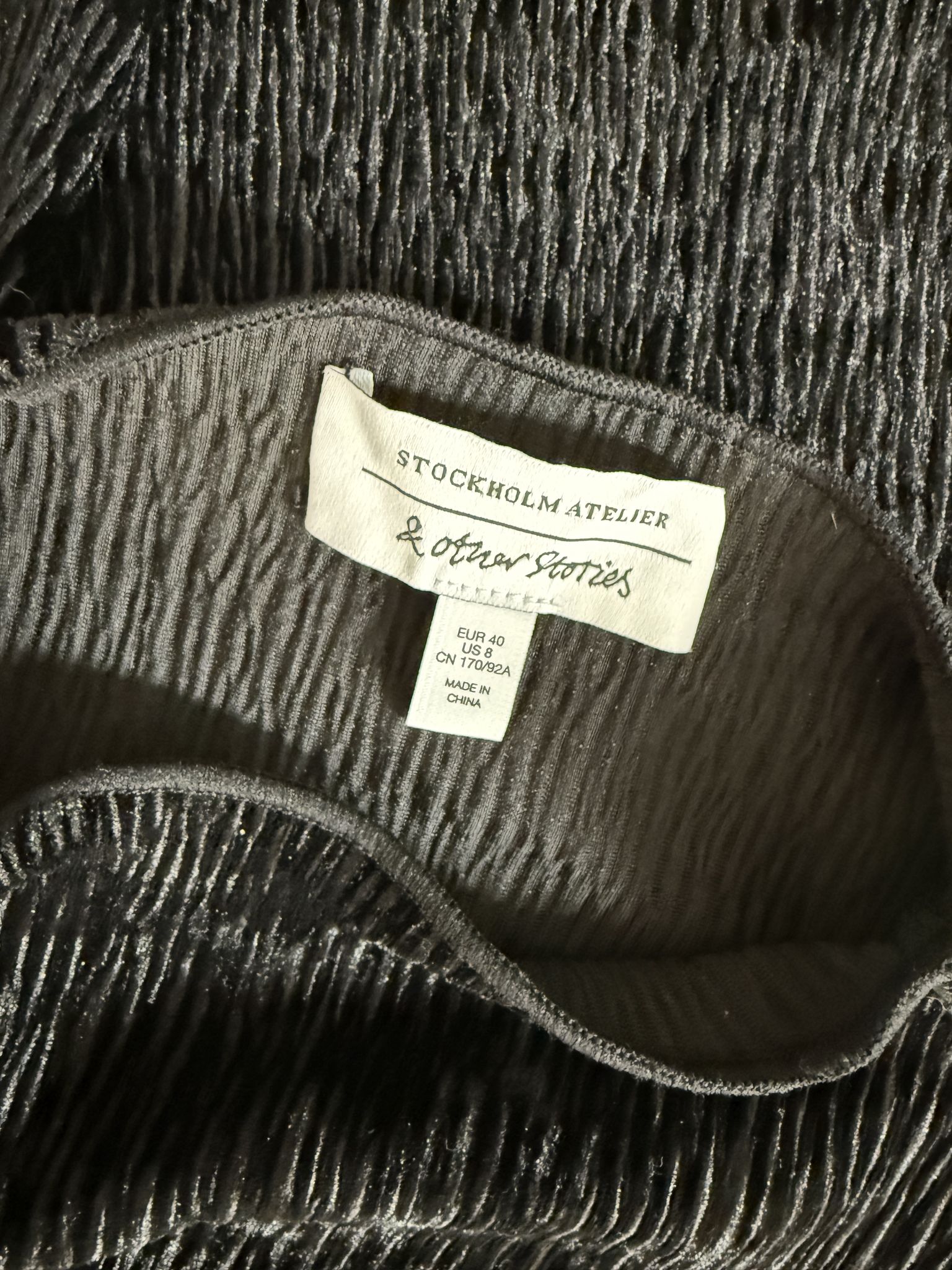 Dieses Secondhand Kleid von & Other Stories ist der Beweis, dass Xmas Looks auch lässig sein können. Der schwarze Crushed Velvet sorgt für Struktur und subtilen Glanz, während die normale Passform easy fällt und trotzdem edel wirkt. Perfekt für alle, die den Feiertagsspirit mitnehmen wollen, ohne sich dafür in Glitzer einzupacken.
