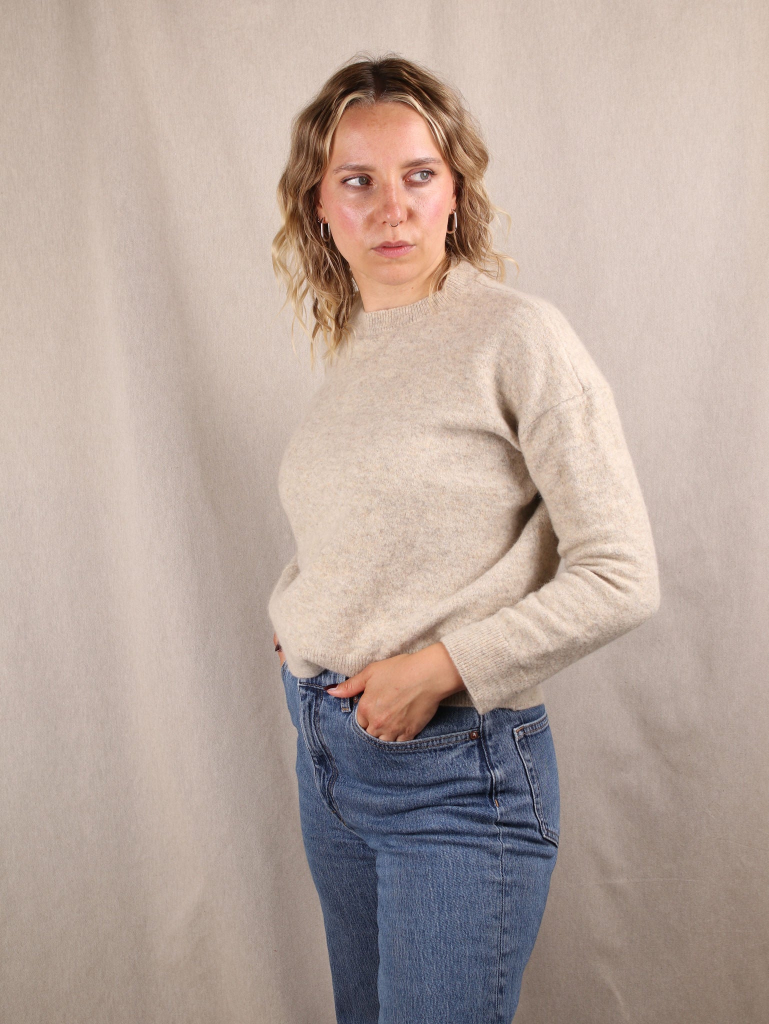 Der Artikel wurde gerne getragen, befindet sich aber weiterhin in gutem Zustand. Kleinere Gebrauchsspuren wie leichtes Pilling oder dezente Reparaturen können vorkommen, auffälligere Mängel listen wir selbstverständlich explizit auf.