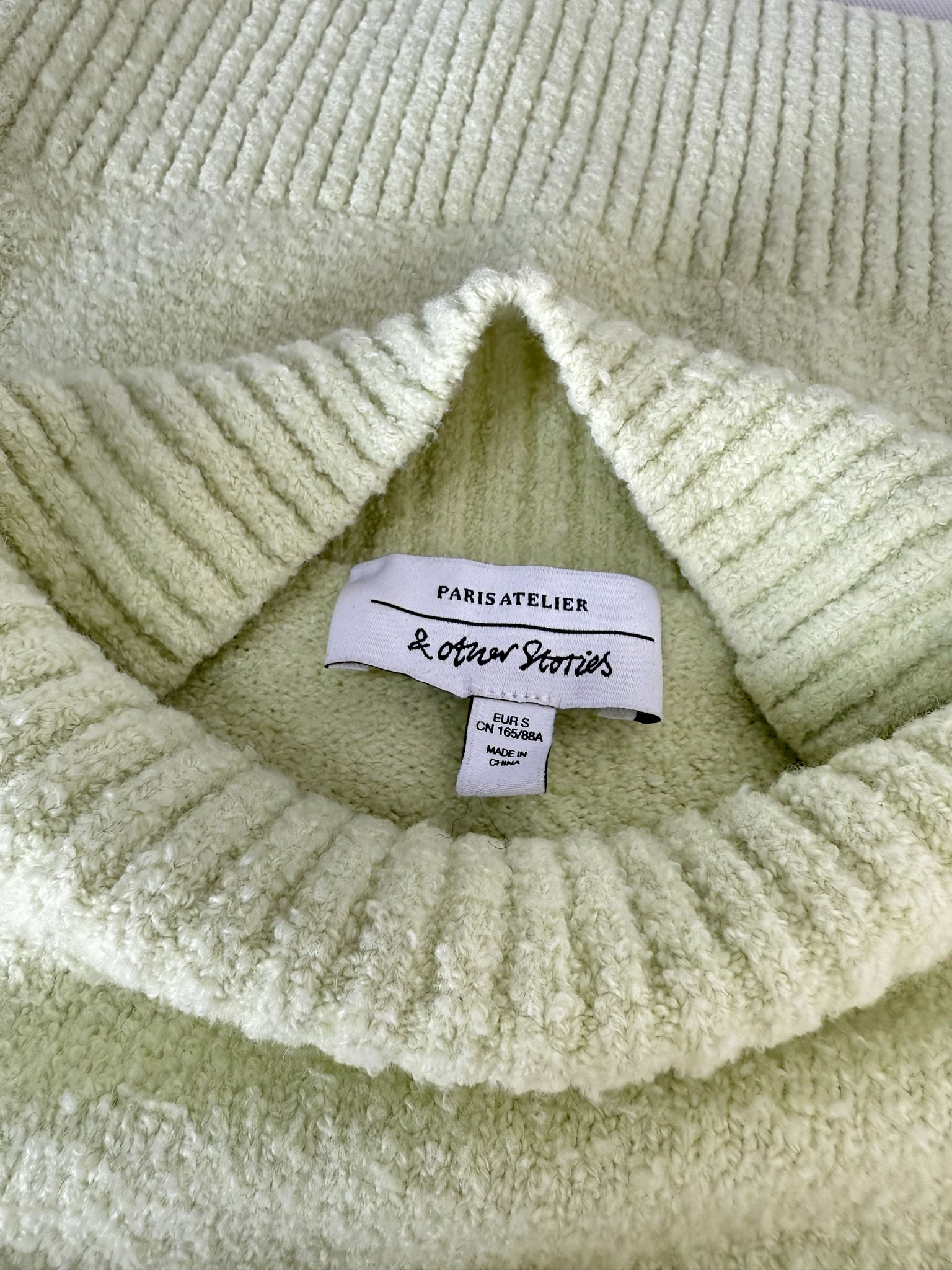 Dieser hellgrüne Rollkragenpullover von & Other Stories ist ein Preloved-Schatz, der in keiner trendbewussten Garderobe fehlen darf. Aus Baumwoll-Mix gestrickt, bietet er dir den perfekten Mix aus Komfort und Stil.