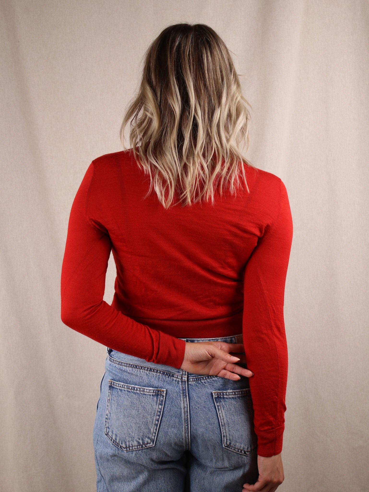 Das Kleidungsstück wurde nie getragen und besitzt noch das Originaletikett. In den meisten Fällen waschen wir es jedoch schonend per Hand, um es aufzufrischen.