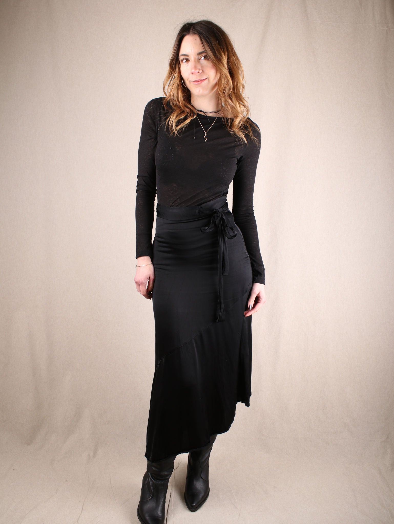 Asymmetrischer Midirock aus Satin