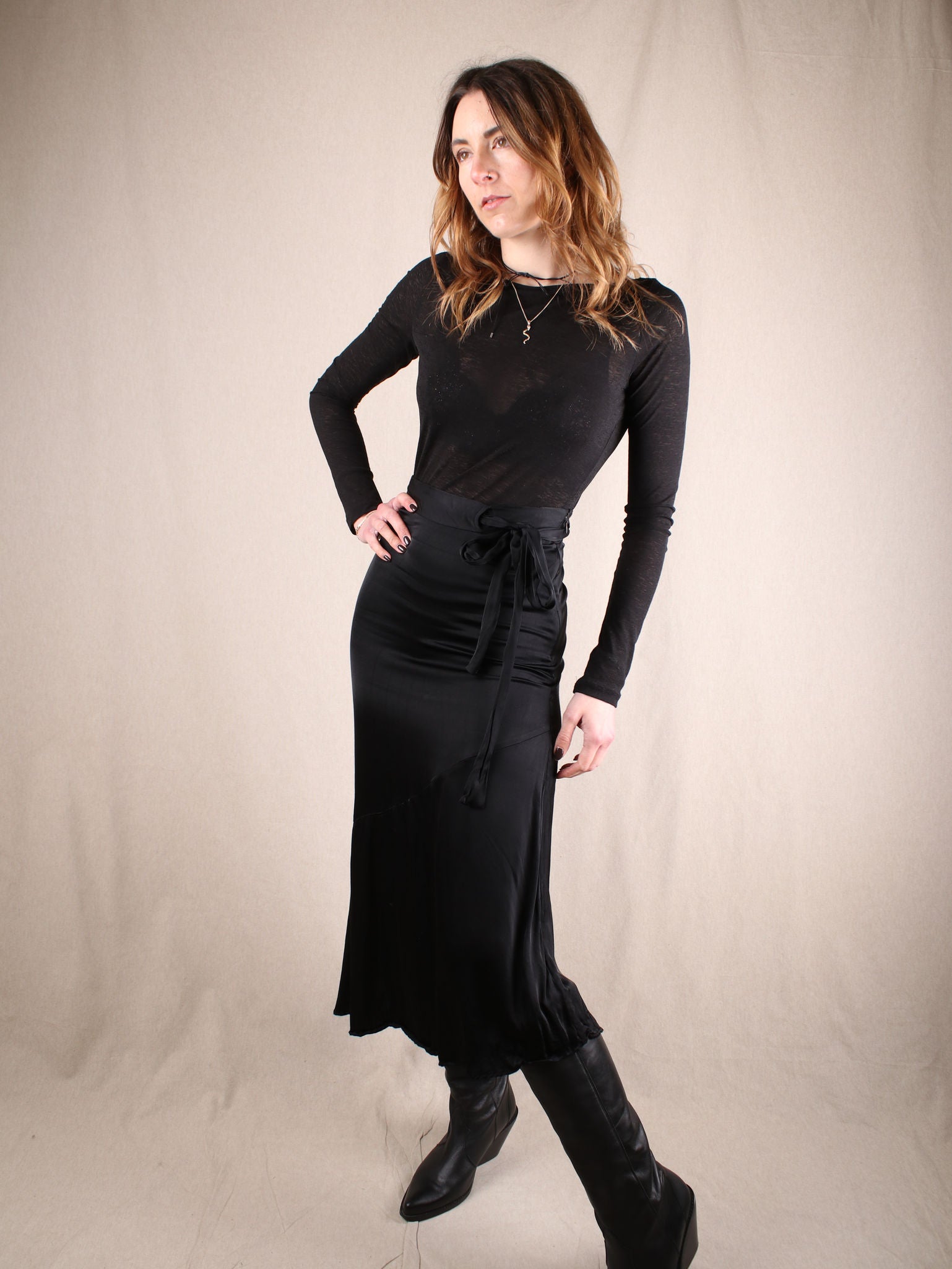 Asymmetrischer Secondhand Midirock aus Satin von & Other Stories mit Volant-Saum und Bindegürtel