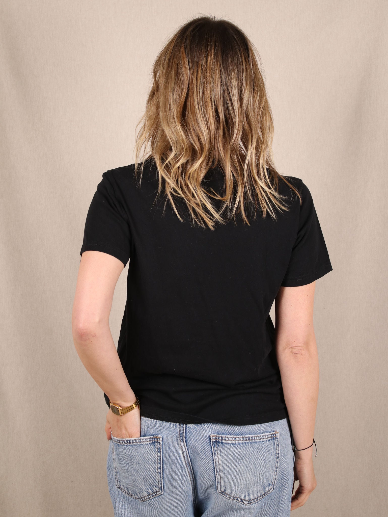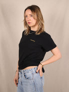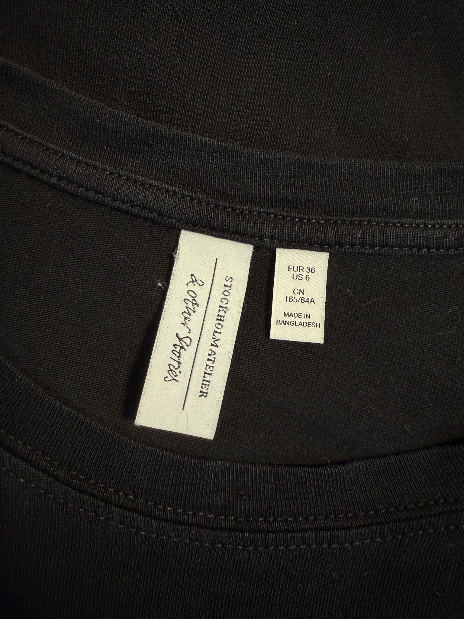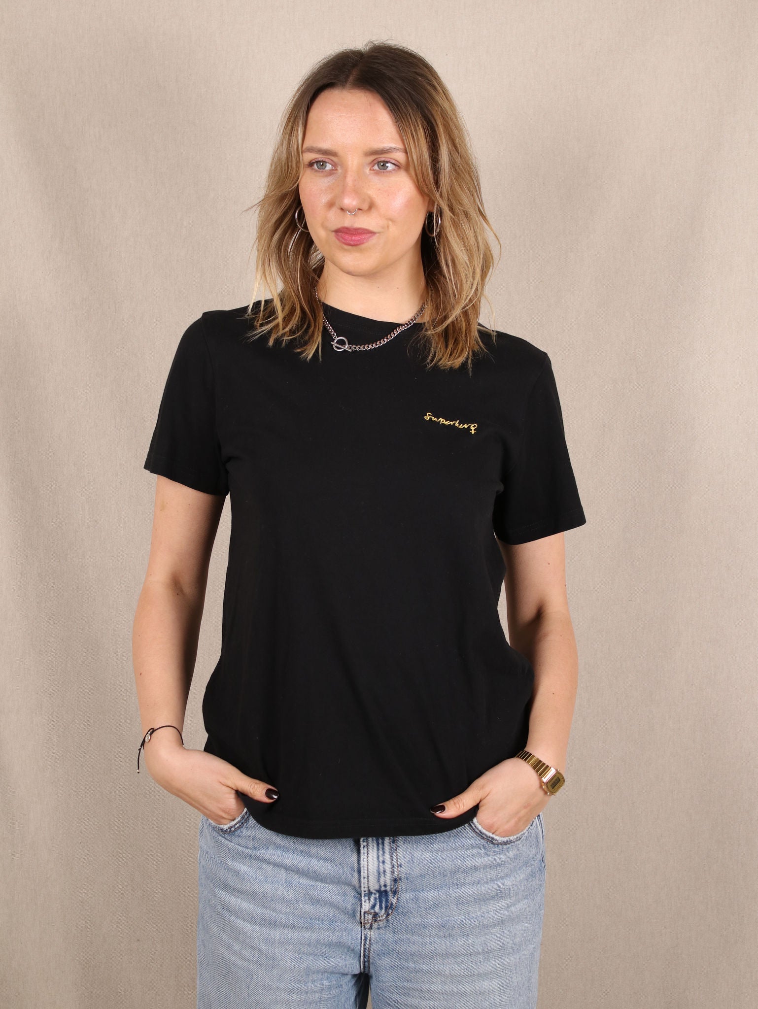 Schlicht, aber mit Statement: Dieses Preloved-T-Shirt von & Other Stories kommt in tiefem Schwarz und überzeugt mit seiner minimalistischen „Superhero“-Stickerei auf der Brust. Aus hochwertiger Baumwolle gefertigt, fühlt es sich super soft auf der Haut an und ist der perfekte Allrounder für entspannte Casual-Looks oder als Kontrast zu edgy Outfits. Hol dir dieses It-Piece und werde zur Heldin deines Styles!