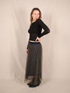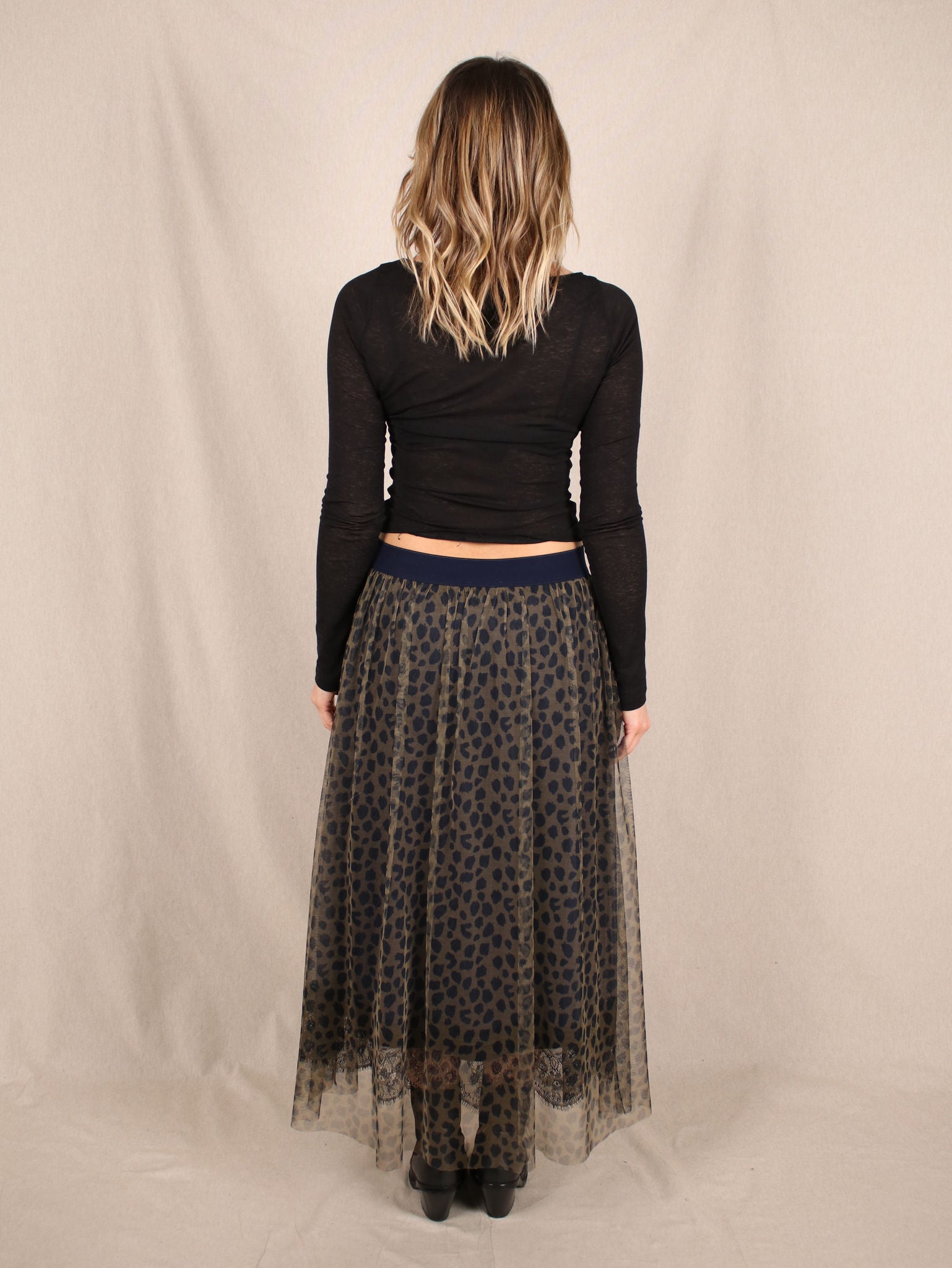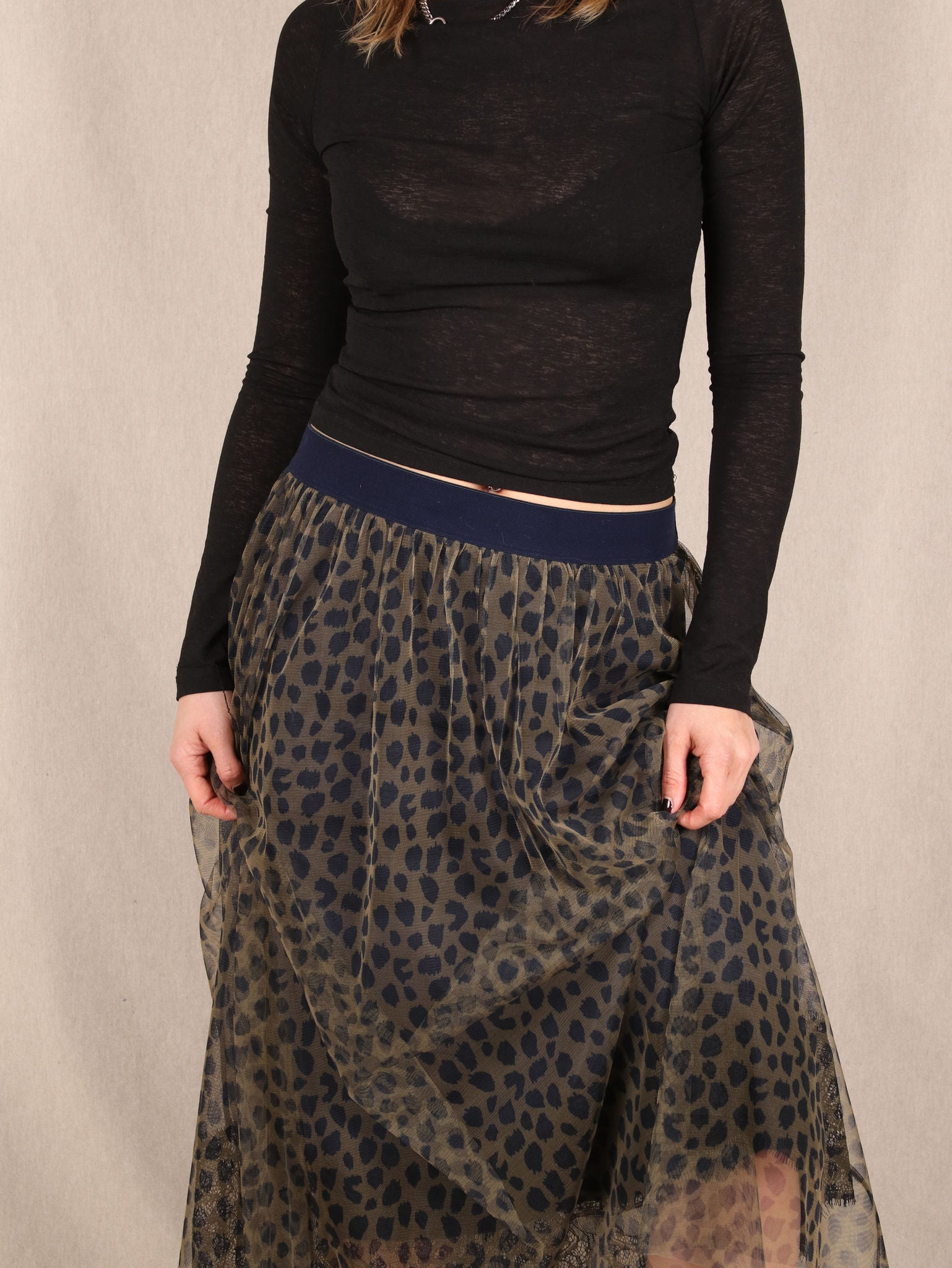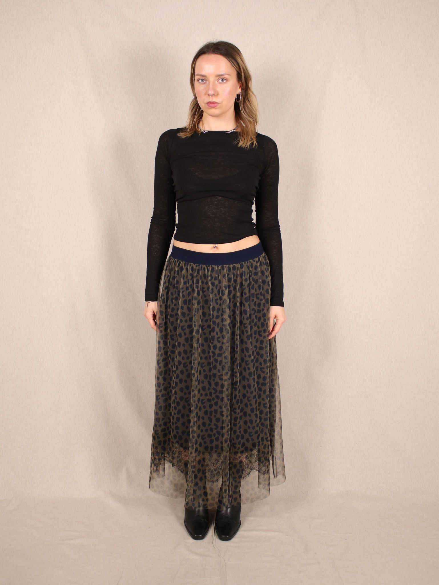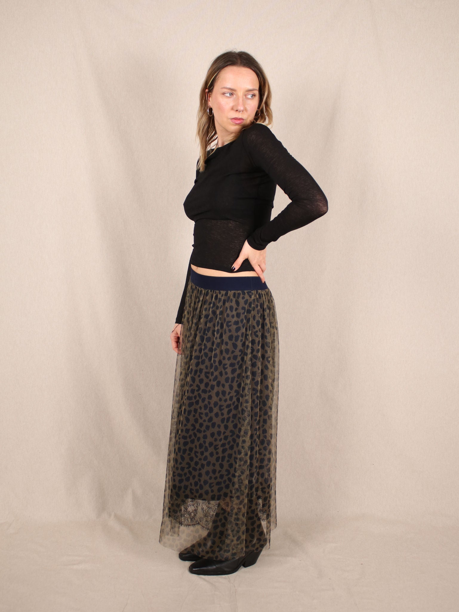 Maxirock aus Mesh mit Leo-Print und Spitze