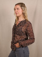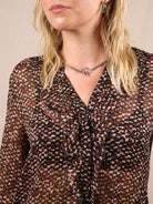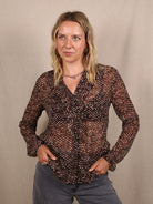 Diese durchsichtige Rüschenbluse von Rich & Royal flirtet ganz offen mit deinem inneren Gossip Girl – XOXO und Secondhand vibes inklusive. Der bordeauxfarbene Leo-Print auf zartem Crêpe-Stoff bringt Drama ohne Overload. Ob mit Bralette für's Afterwork oder Layer-Look fürs Office – dieses Piece schreit „Upper East Side“ mit nachhaltigem Twist.