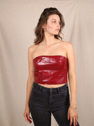 Dieses bordeauxrote Lack-Corset von Rotate Birger Christensen ist nichts für schwache Nerven. Der Snake-Print schimmert verführerisch, der Zip hinten sitzt wie ein Statement – und der Cropped-Fit bringt Drama auf den Punkt. Rihanna würde es lieben. Secondhand und gefährlich gut.