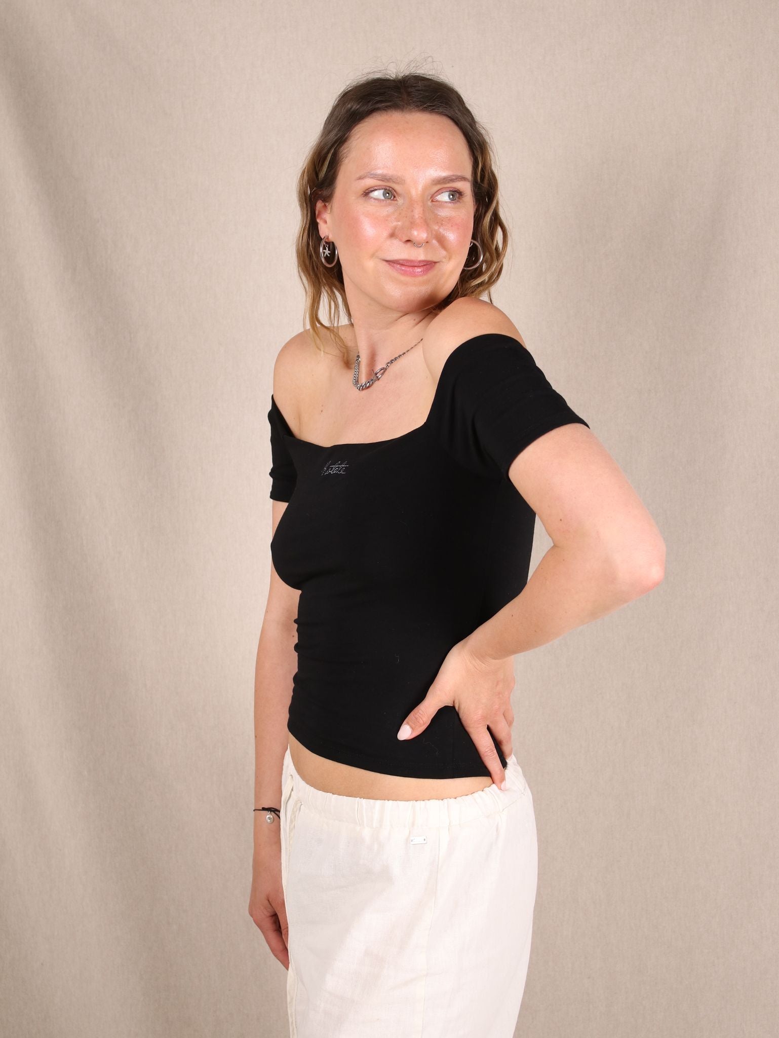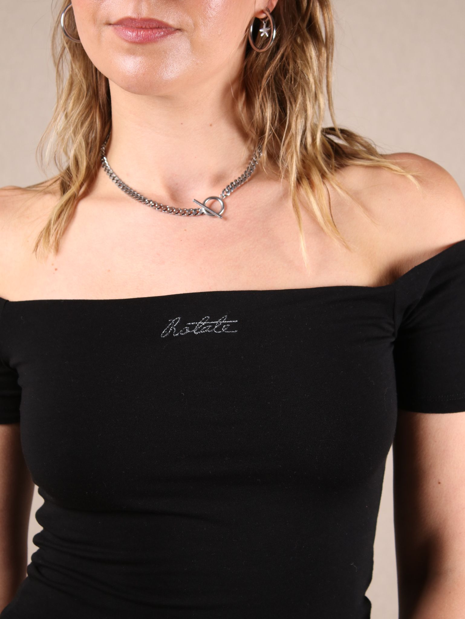 Taylor würde es tragen: Dieses Off-Shoulder-Top von Rotate ist schlicht, aber mit Statement. Die enganliegende Passform und der elastische Jersey-Stoff sorgen für maximalen Komfort, während der schulterfreie Schnitt jedes Outfit sofort nach „Main Character Energy“ aussehen lässt. Perfekt für den nächsten Konzertbesuch, Date Night oder einfach, wenn du dich ein bisschen mehr wie du selbst fühlen willst. Secondhand gefunden – für dich bereit, die nächste Hauptrolle zu spielen.