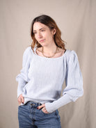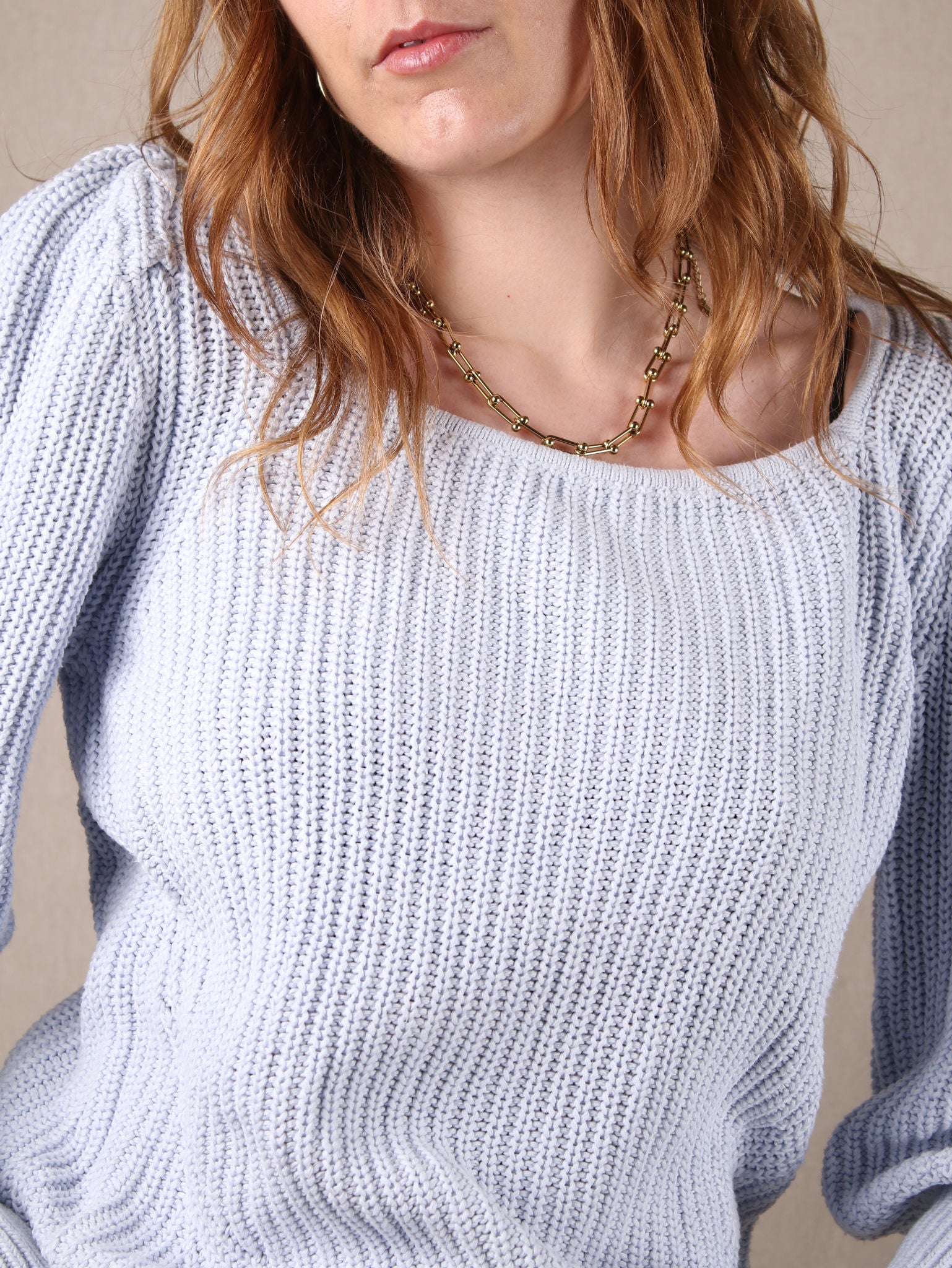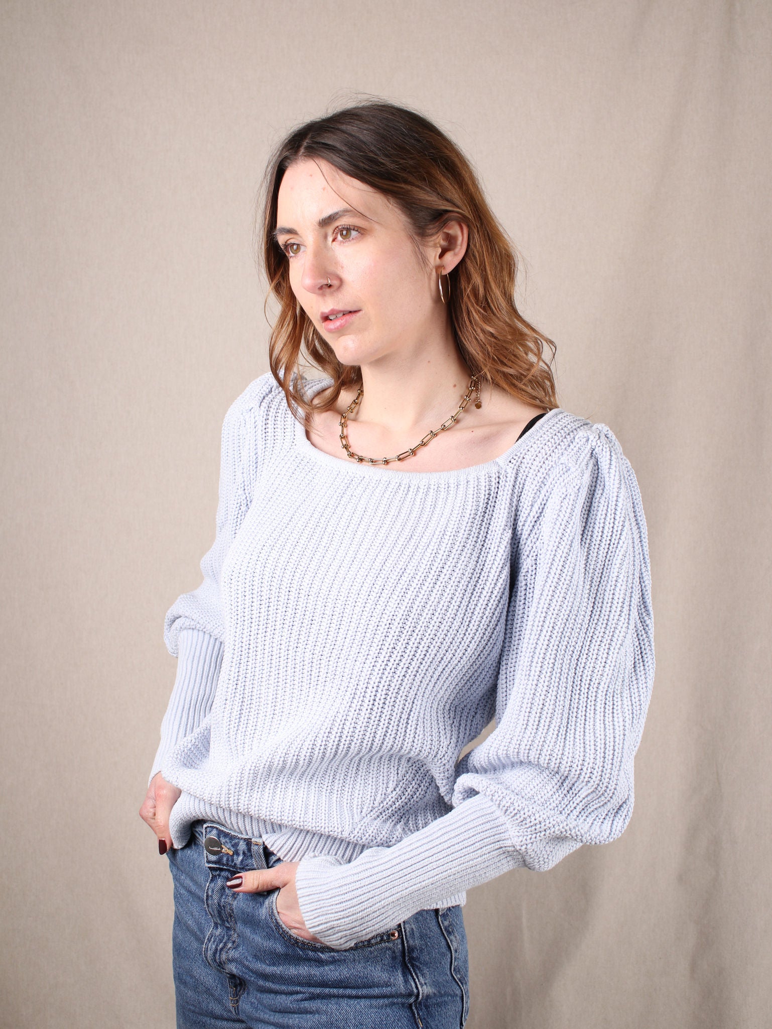 Strick-Pullover aus Baumwolle mit Puffärmeln