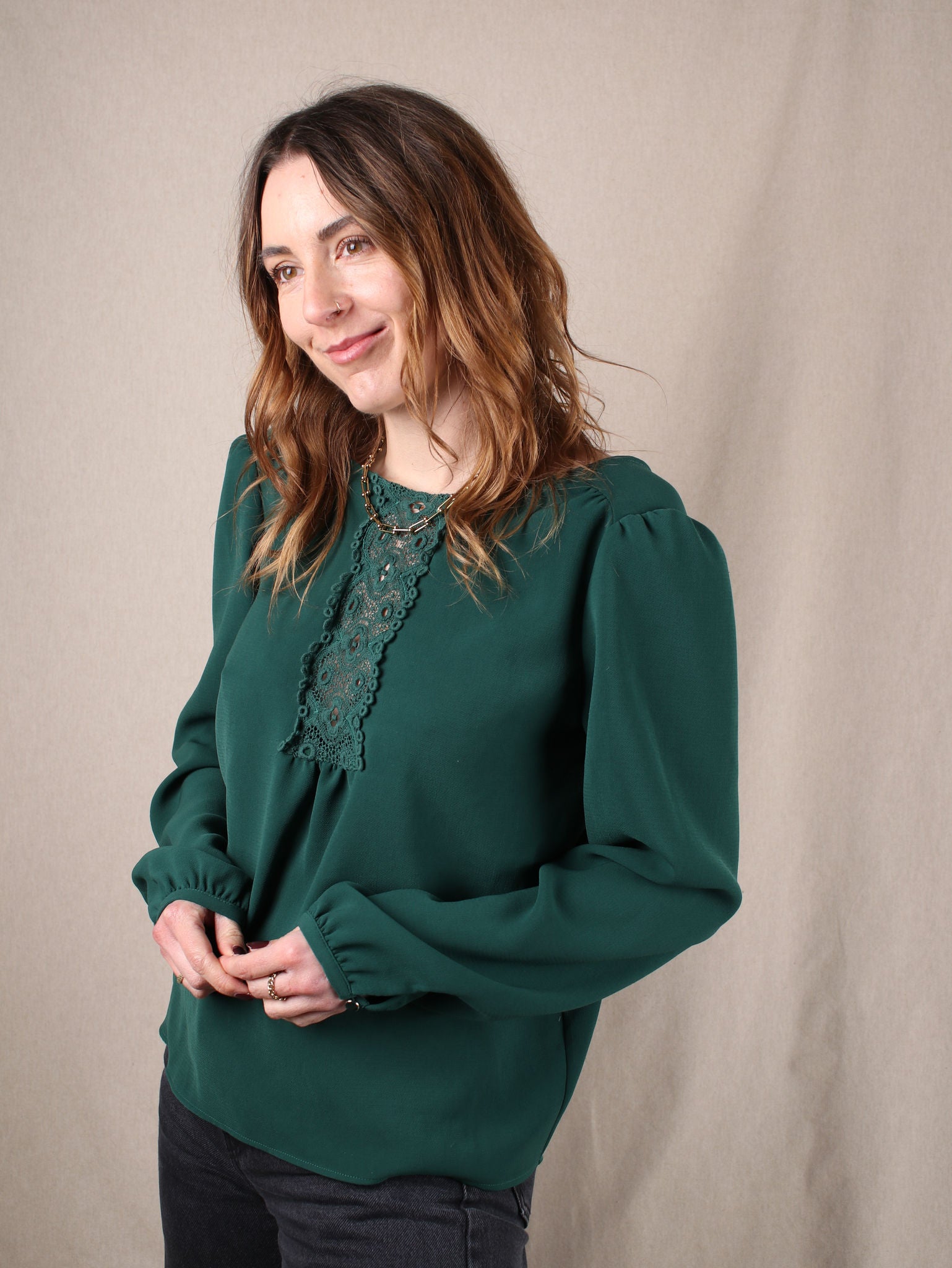 Bluse von Sézane mit Spitzeneinsatz vorne und Rückenausschnitt