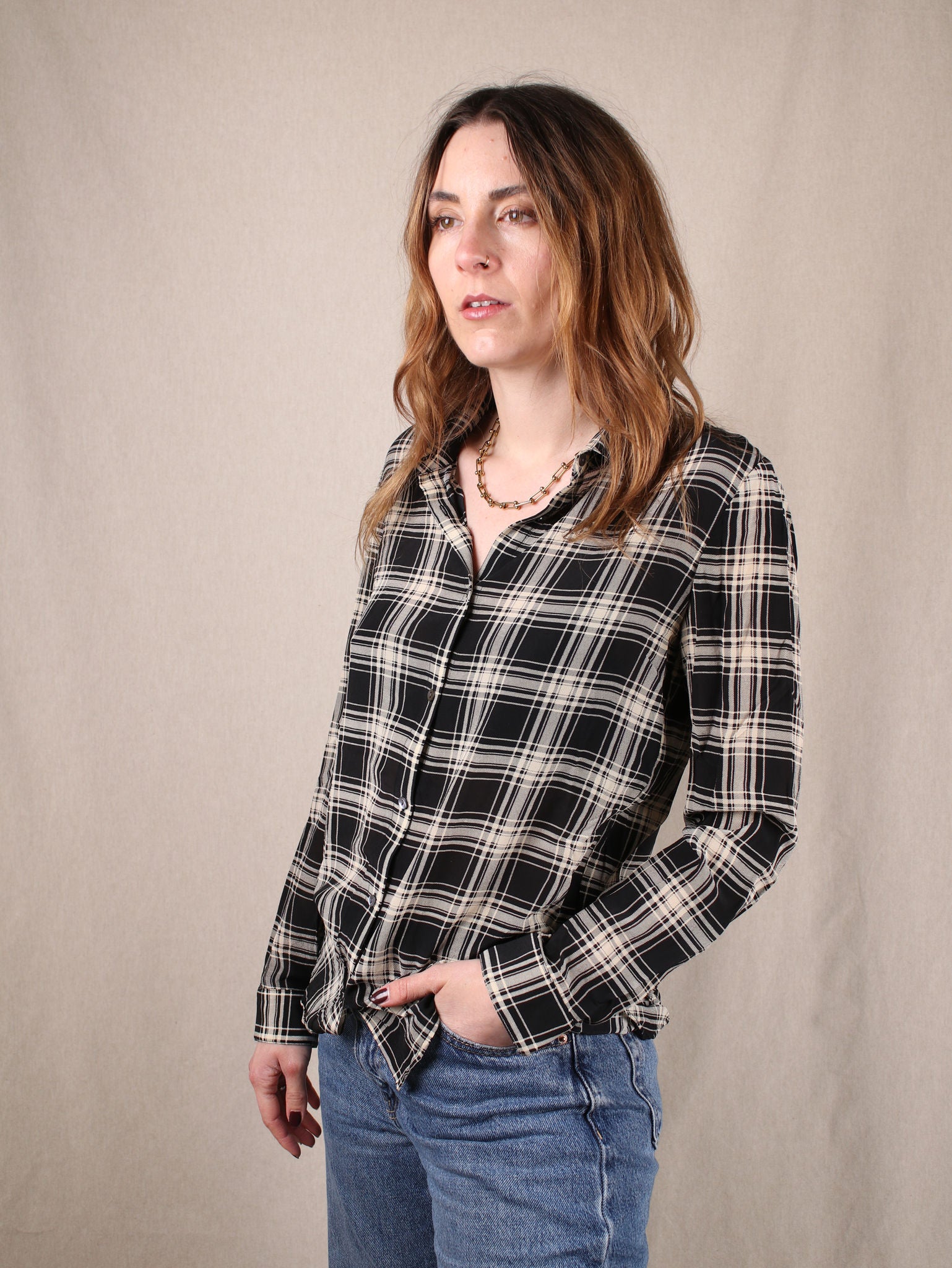 Secondhand Hemd aus Seide mit Karo-Muster von The Kooples,