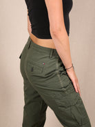 Diese olivgrüne Cargo-Hose von Tommy Hilfiger bringt Workwear-Vibes auf stylische Weise in deinen Alltag. Die aufgesetzten Taschen sind nicht nur praktisch, sondern auch ein echtes Style-Statement – ganz im Sinne des Utility-Trends.