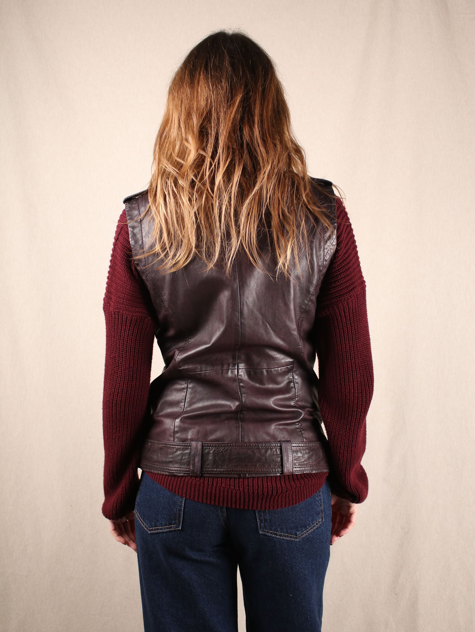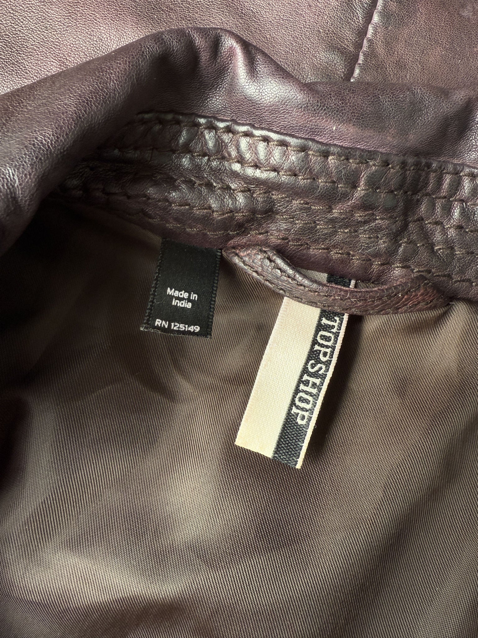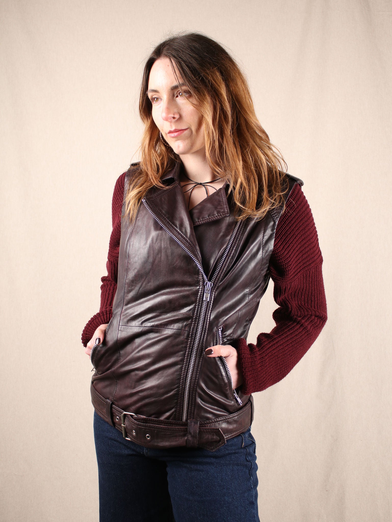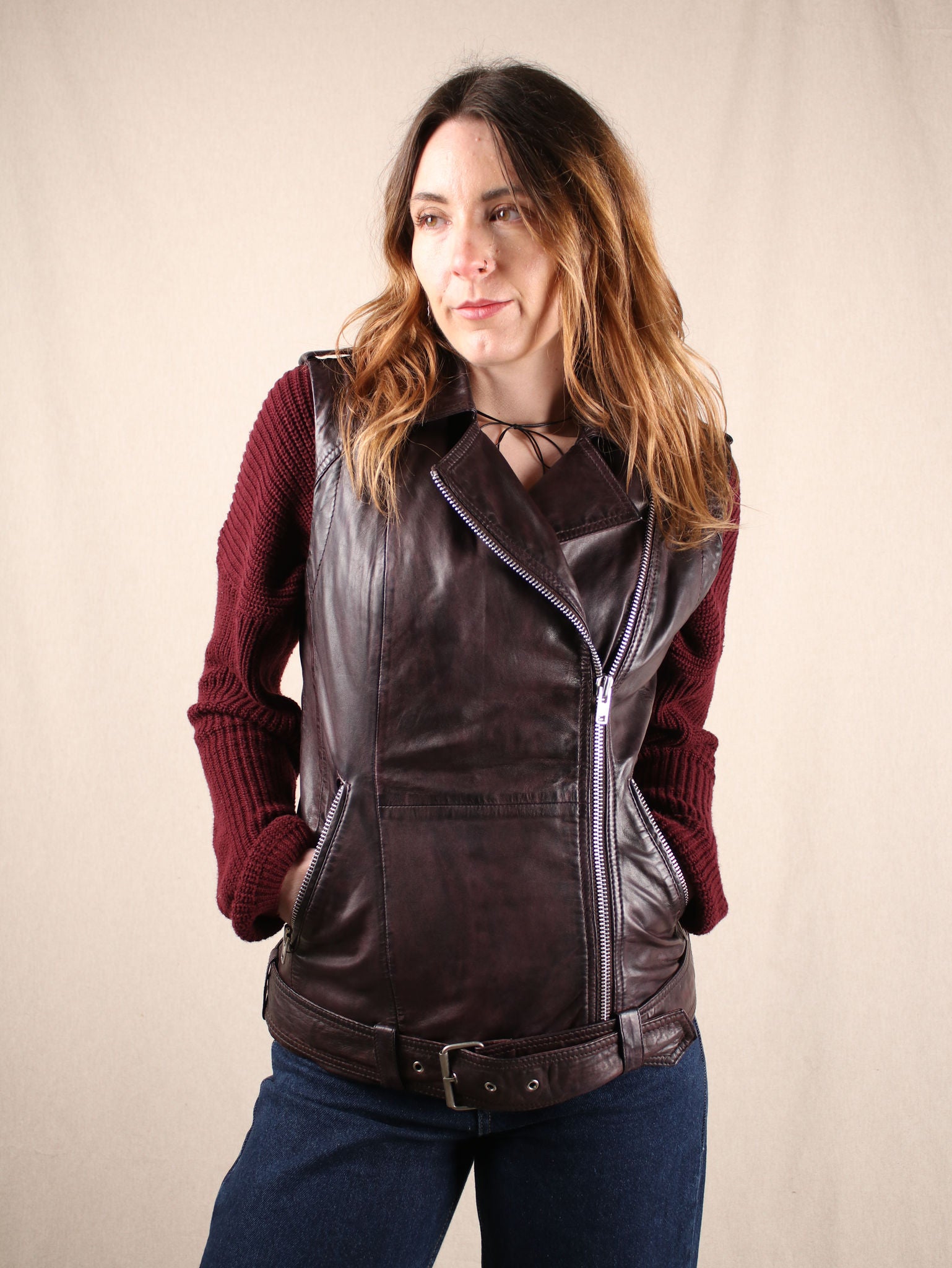 Diese Secondhand Lederweste von Topshop bringt mit ihrem tiefen Bordeaux-Ton und den markanten Zipper-Details echte Biker-Vibes. Das hochwertige Echtleder verleiht ihr eine edgy Attitüde, während der taillierte Schnitt für eine starke Silhouette sorgt. Perfekt über Strick für einen modernen Layering-Look oder mit T-Shirt und Denim für den ultimativen Vintage-Style.