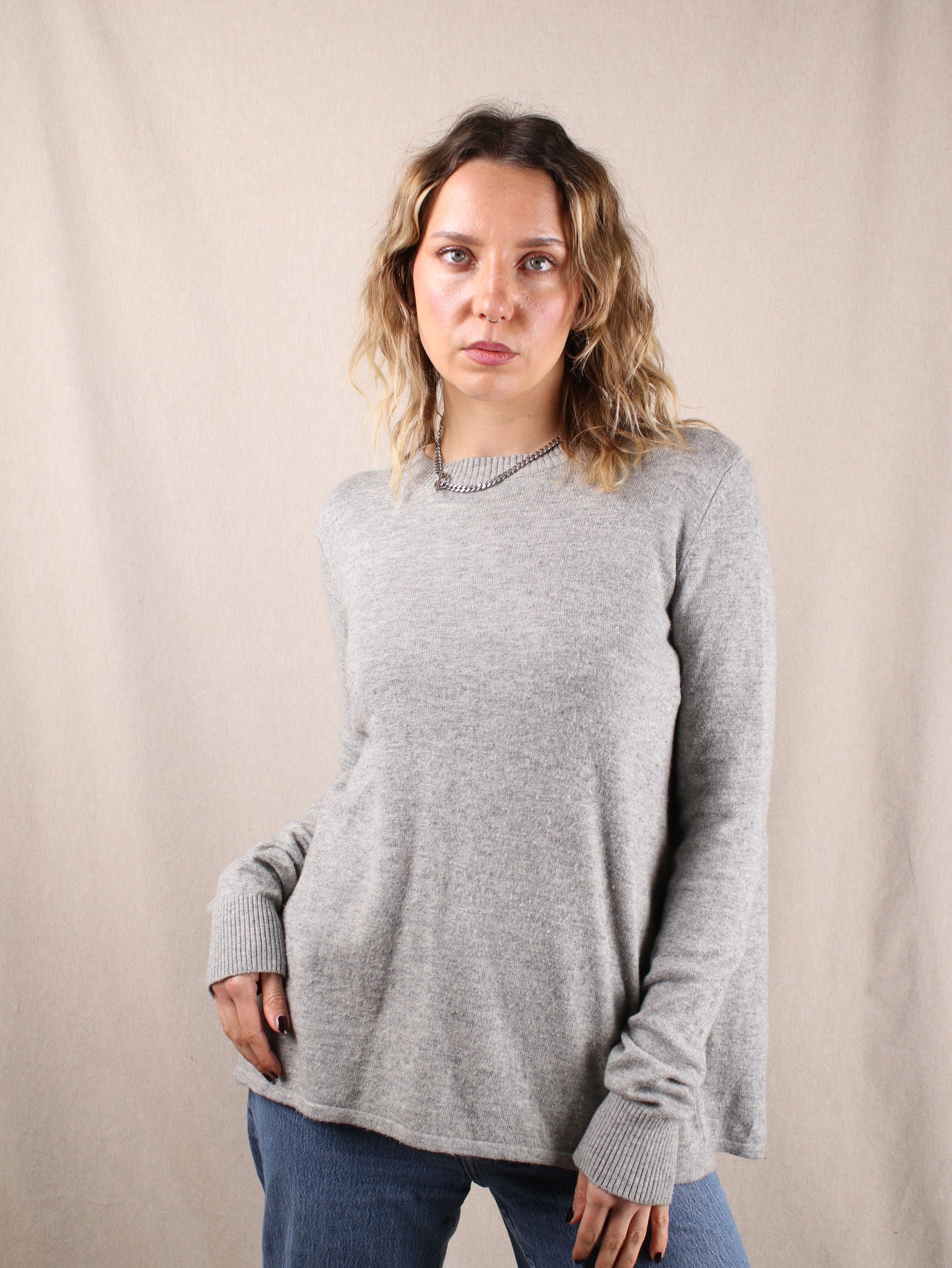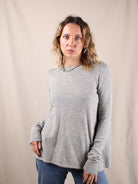 Gönn dir den Oversize-Pullover von Twist & Tango in einem zeitlosen Hellgrau, der aus hochwertigem Viskose-Woll-Mix mit Kaschmir gefertigt wurde und durch ein cooles Ausschnitt-Detail am Rücken besticht. Dieses Preloved-Teil ist ein echtes Must-have für deine Garderobe und lässt sich mühelos mit Skinny Jeans oder einem lässigen Rock kombinieren. Perfekt für alle, die Mode lieben und gleichzeitig nachhaltig denken wollen!