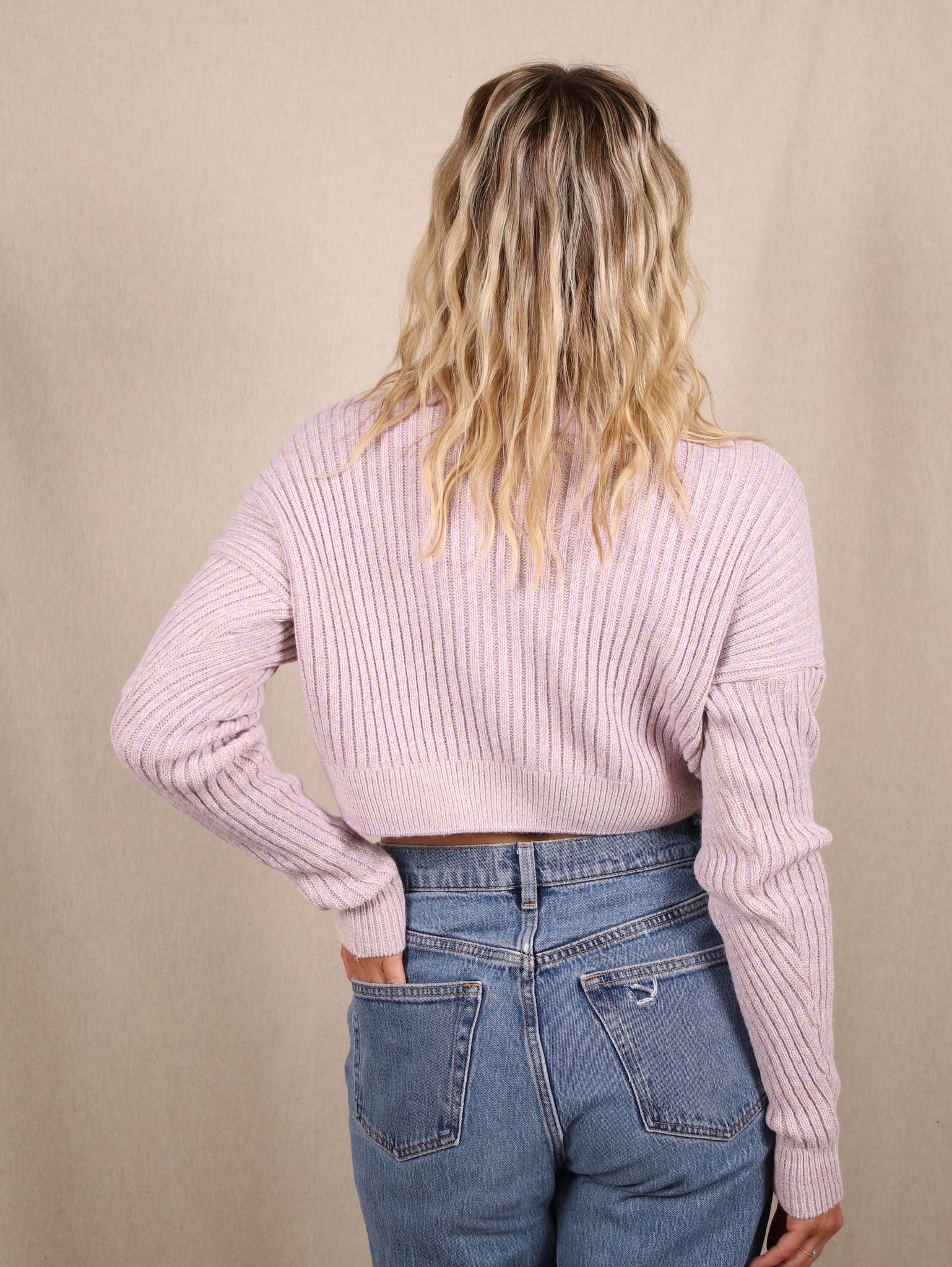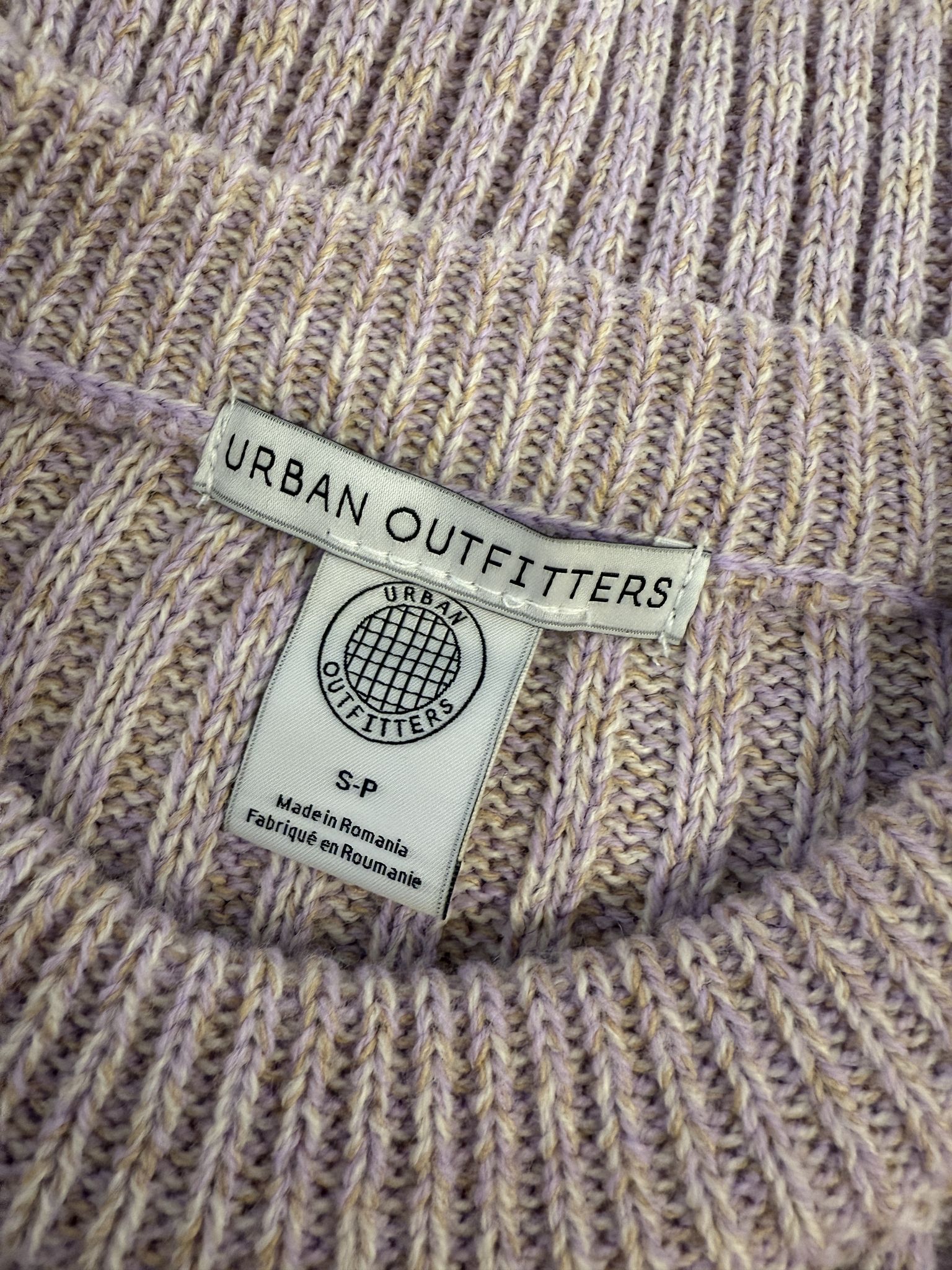 Dieser cropped Strickpullover von Urban Outfitters in zartem Lavendel bringt die perfekte Portion Candycore in deinen Kleiderschrank. Mit seinem soften Material und der figurbetonten Silhouette ist er secondhand cozy und cute zugleich – ideal für frische Frühlingsabende oder süße Layering-Looks.