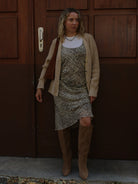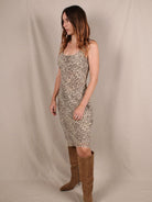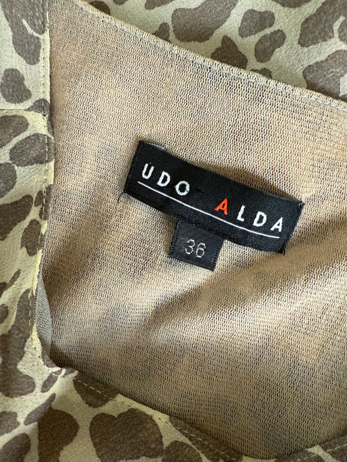 Wild, aber classy: Dieses taillierte Leo-Kleid aus 100 % Seide ist Vintage-Vibes pur – wie gemacht für Aperitivo in der Sonne oder dein inneres Carrie-Bradshaw-Momentchen. Der leichte Crêpe-Stoff schmiegt sich soft an, der Animal-Print macht’s Y2K, und die Midilänge: Perfekt für jede Jahreszeit. Ein Kleid, das für sich spricht – und das Beste: Es ist Vintage. Stil mit Haltung, Baby.