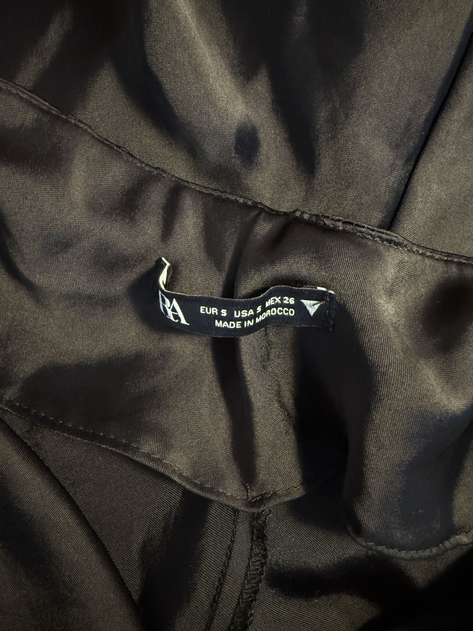 Dieses Secondhand Zara Slip Dress in tiefem Schwarz versprüht pure Eleganz mit einem Hauch von Coolness. Der fließende Satinstoff, die dezente Raffung und die asymmetrische Silhouette machen es zum perfekten Party-Piece. Einfach mit Heels oder Boots kombinieren und ready to shine!