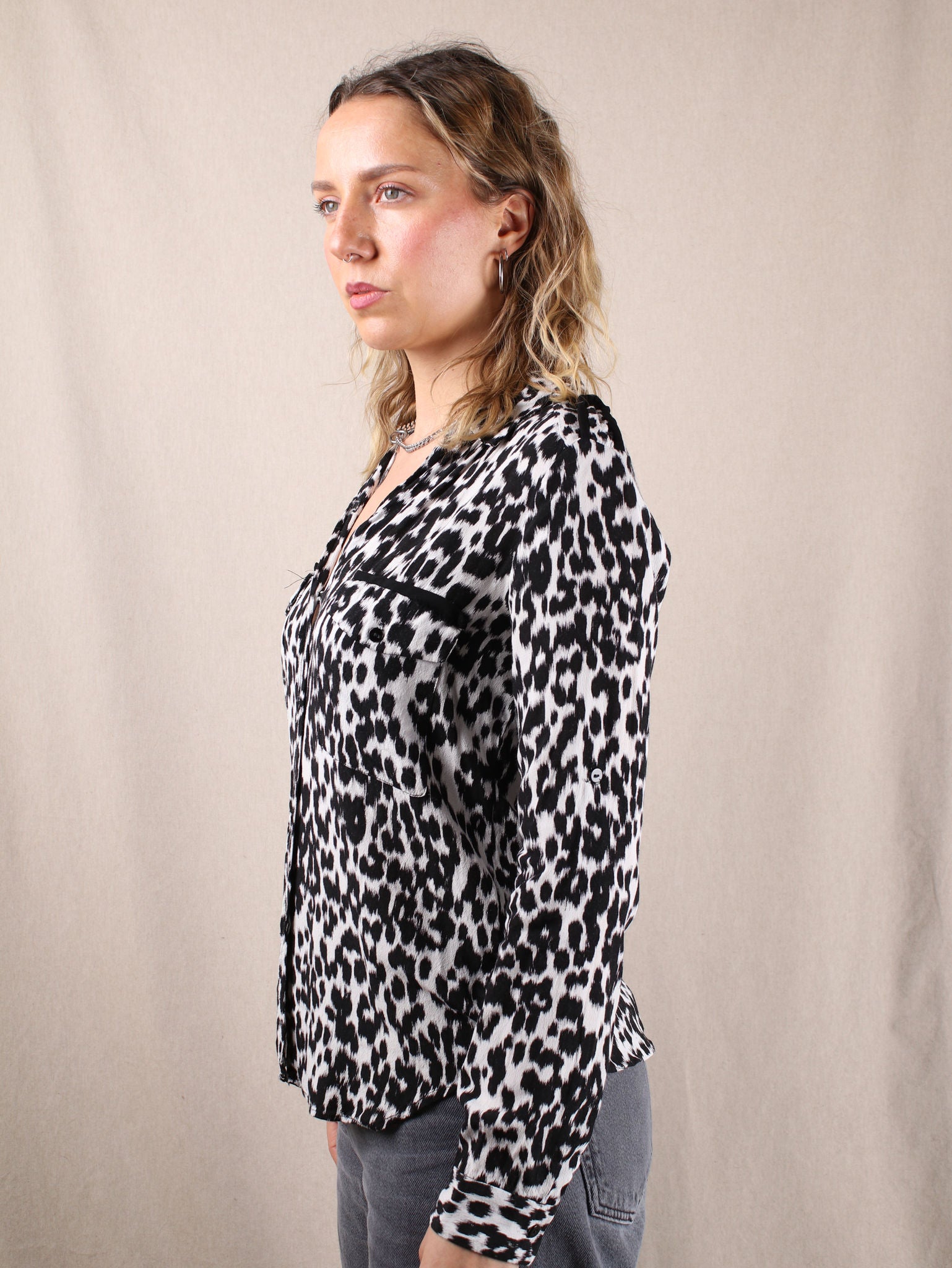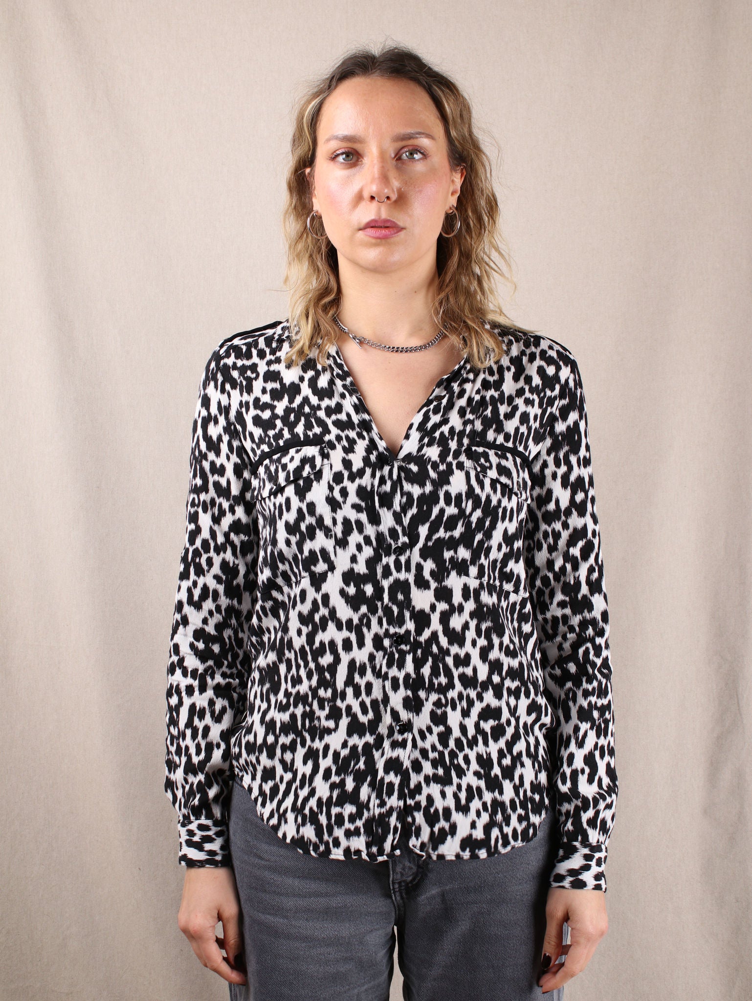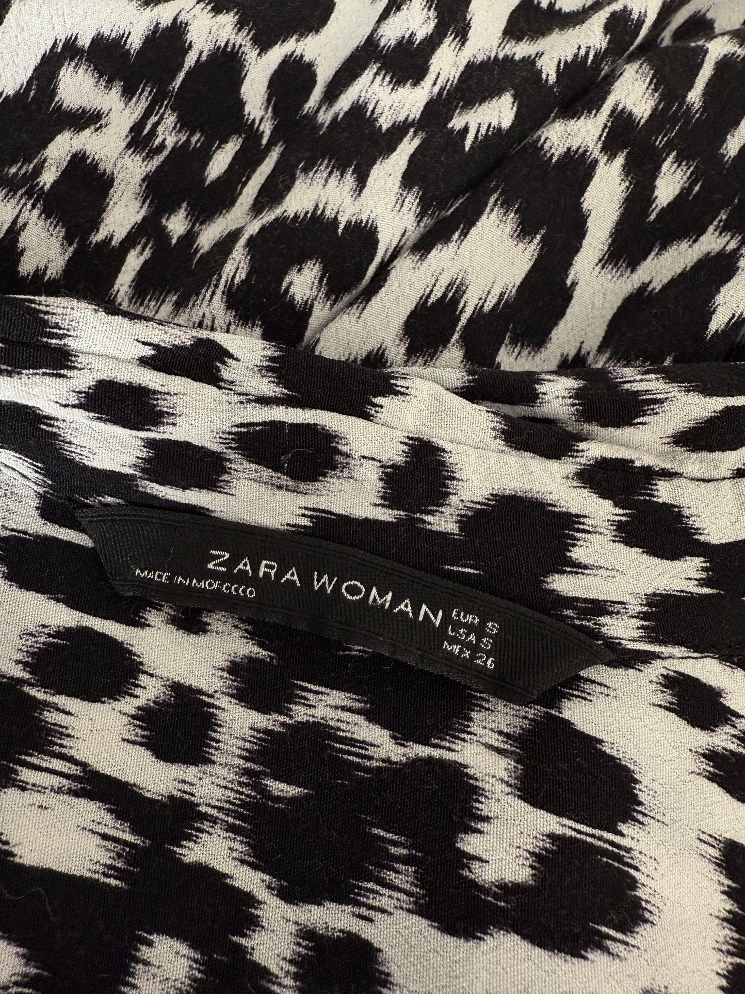 Wild at Heart: Zara Edition Diese preloved Zara-Bluse im angesagten Leo-Muster ist dein Ticket zu einem stilvollen Auftritt! Der Crêpe-Stoff in klassischem Schwarz-Weiß verleiht dir einen Hauch von Eleganz und lässt sich mühelos mit Jeans oder einem schicken Rock kombinieren.