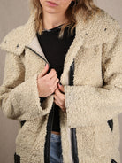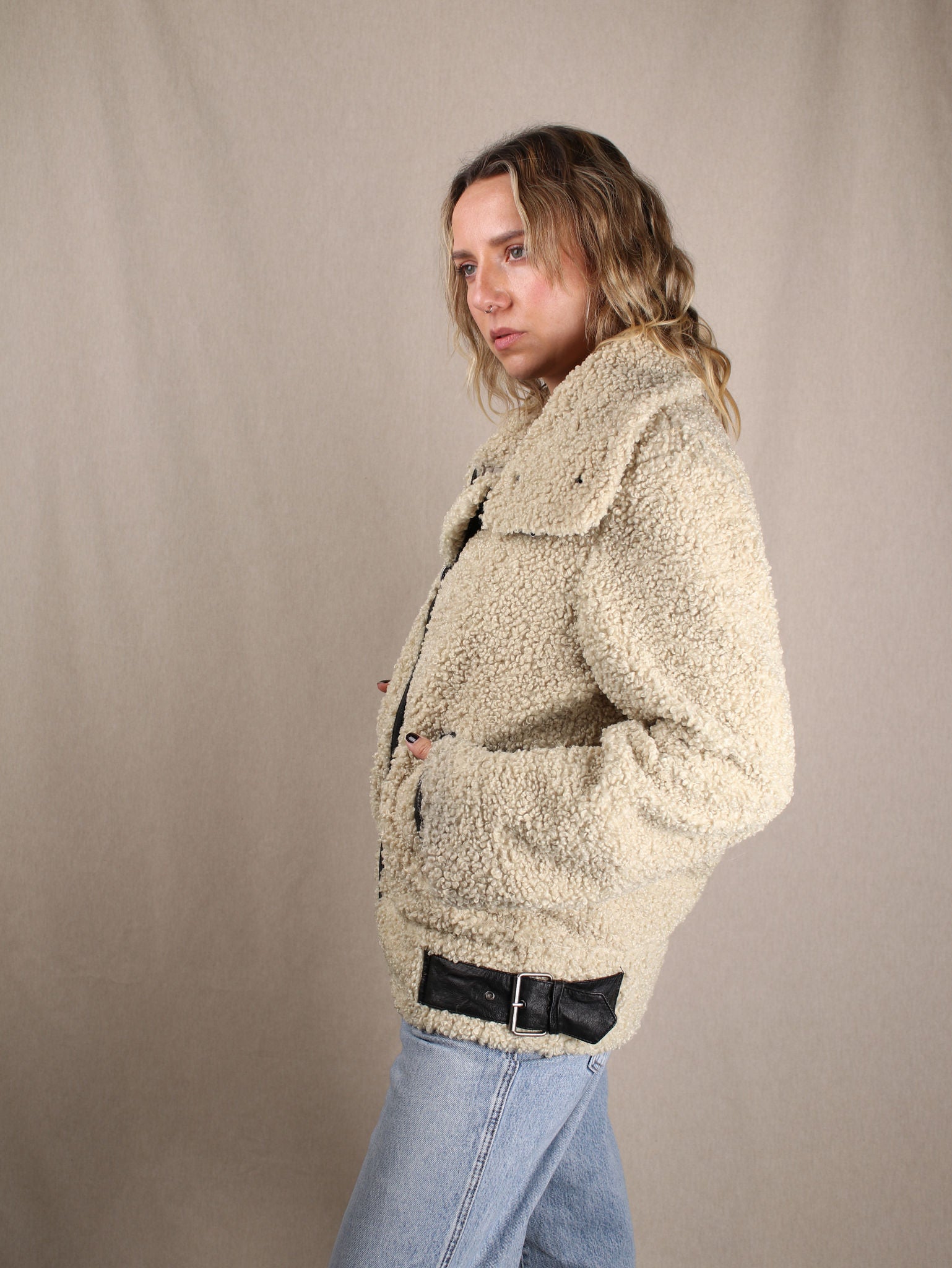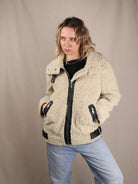 Kunstfell-Jacke im Aviator Design mit Kunstleder-Details