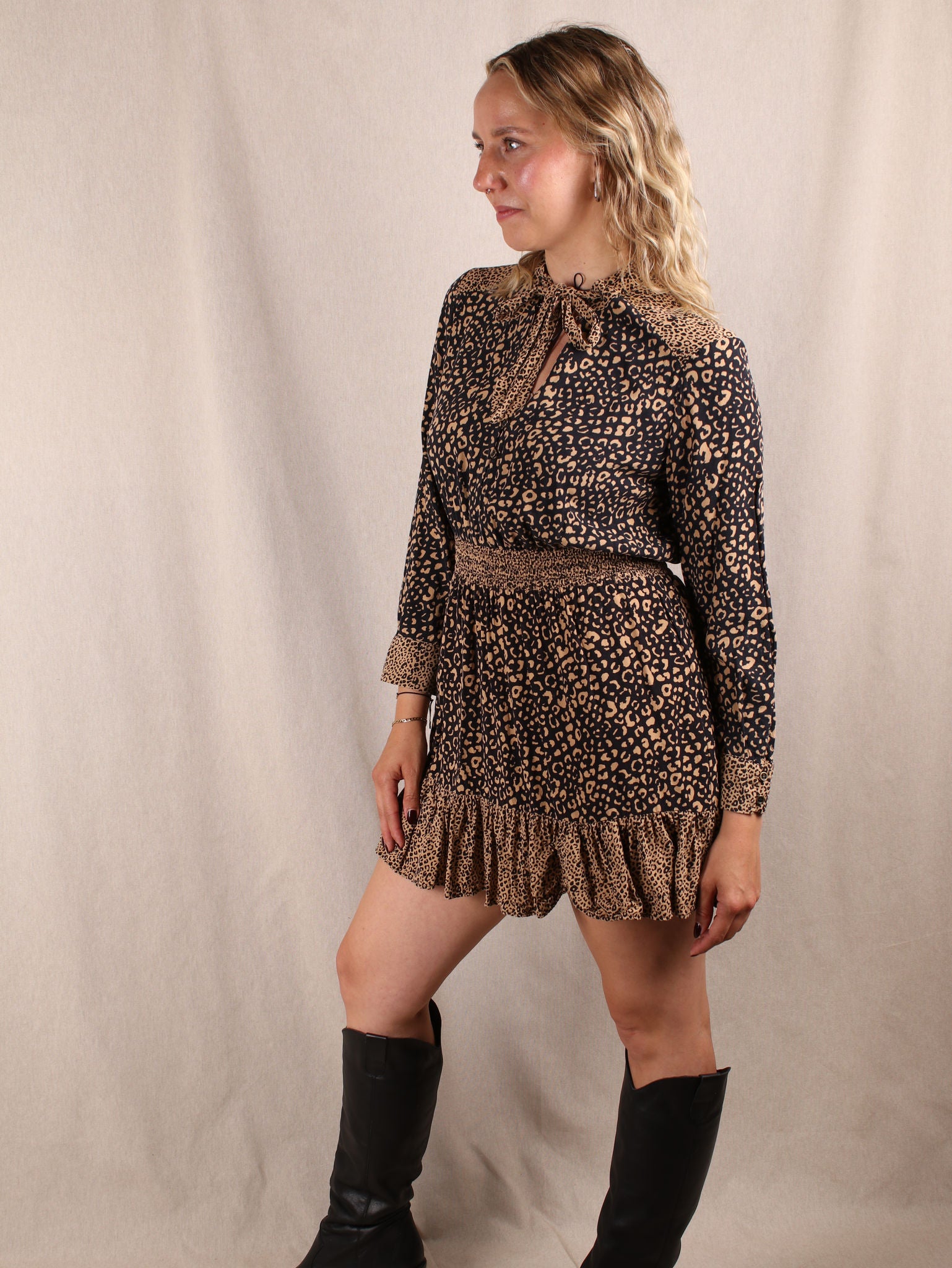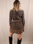 Minikleid aus Viskose mit Leo-Print und Rüschen