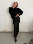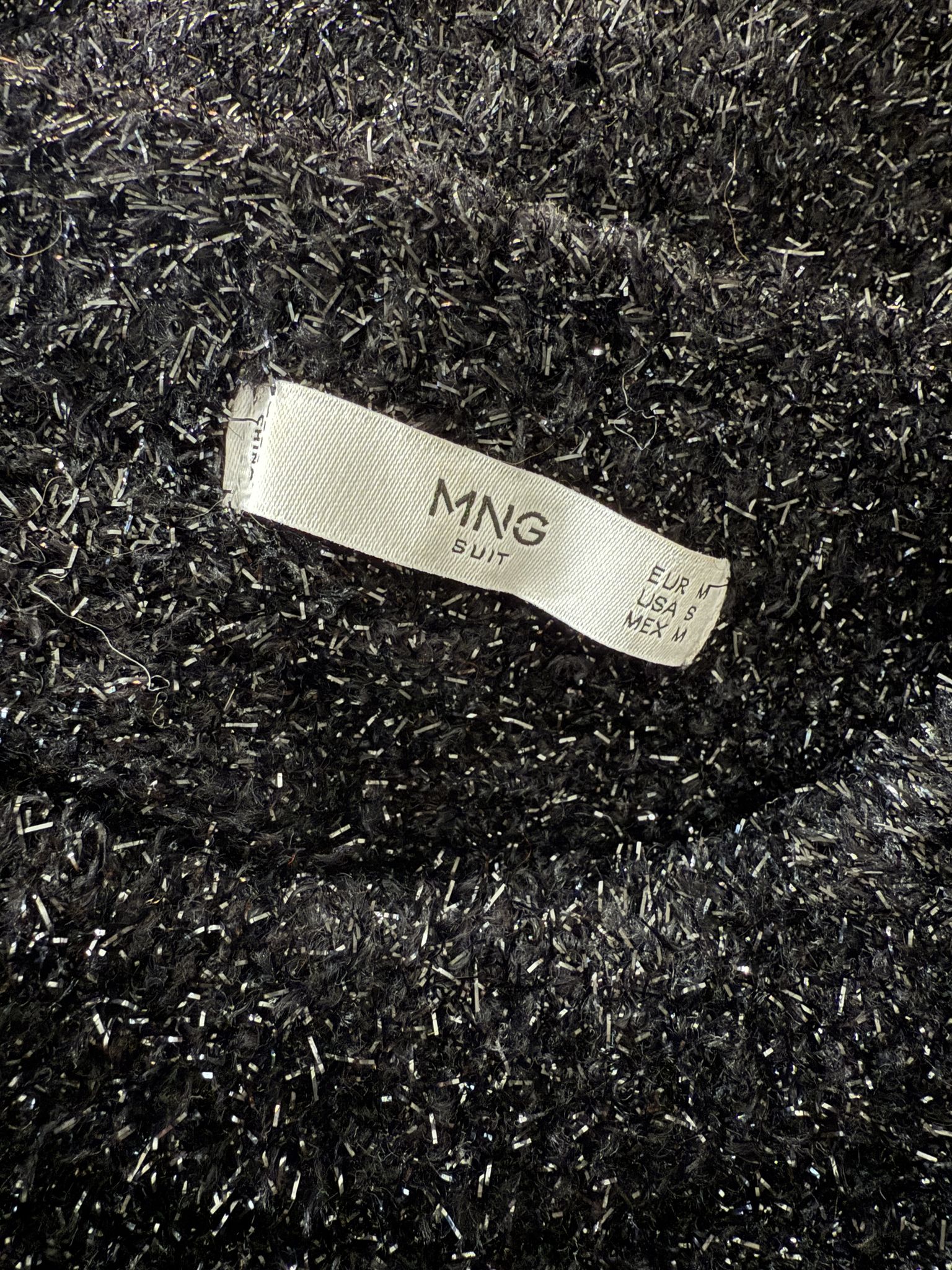 Dieser Secondhand Pullover von Mango bringt dir sofort festliche Vibes, ohne dass du dich dafür besonders anstrengen musst. Der schwarze Glitzerstrick catcht das Licht bei jeder Bewegung, während die loose Passform dir genug Platz lässt, um entspannt durch jede Xmas Runde zu kommen. Perfekt für alle, die cosy bleiben wollen und trotzdem ein bisschen Sternenstaub mitbringen.