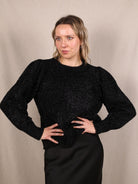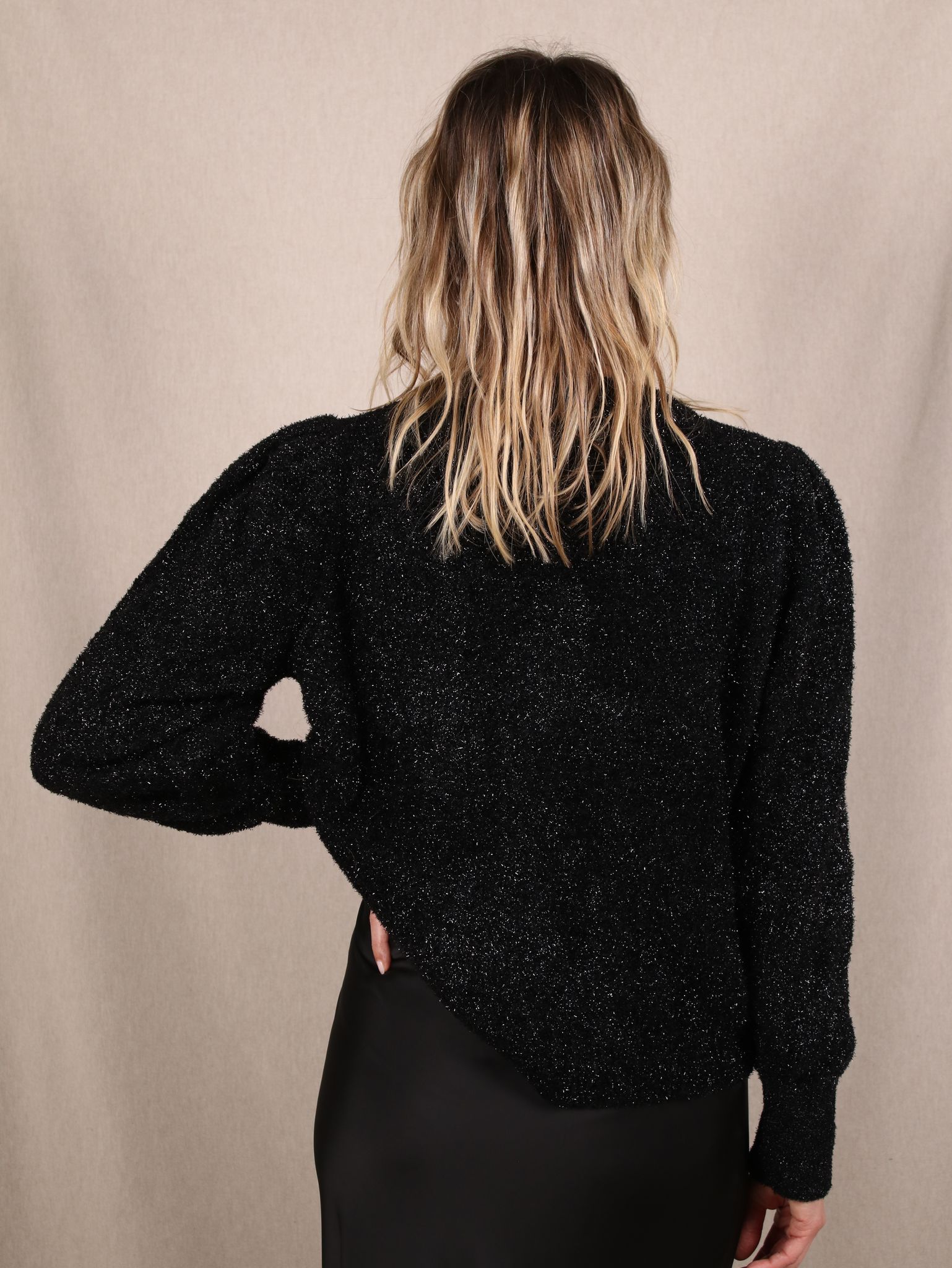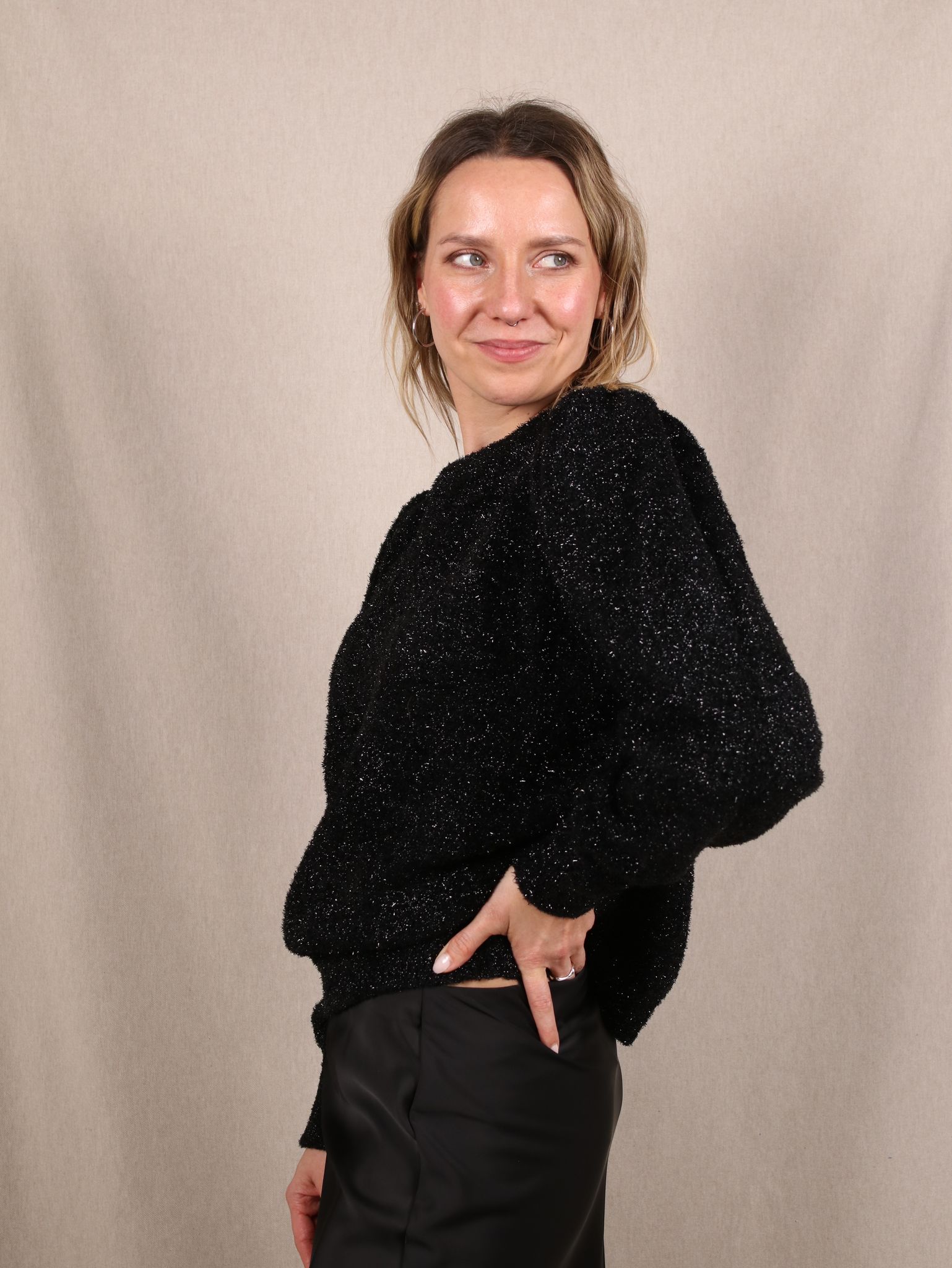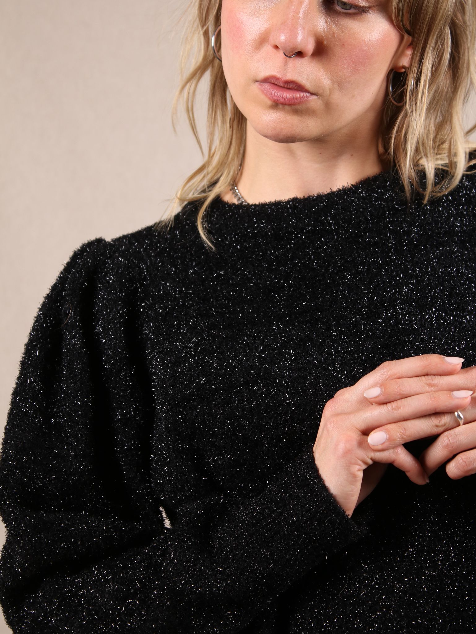 Statement Pullover mit Glitzerfäden und Puffärmeln