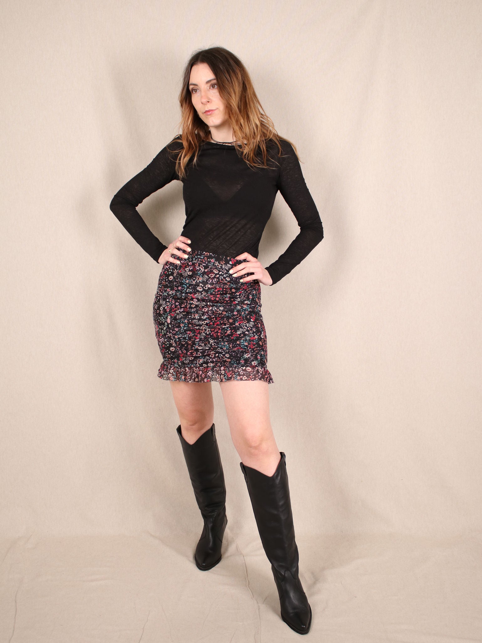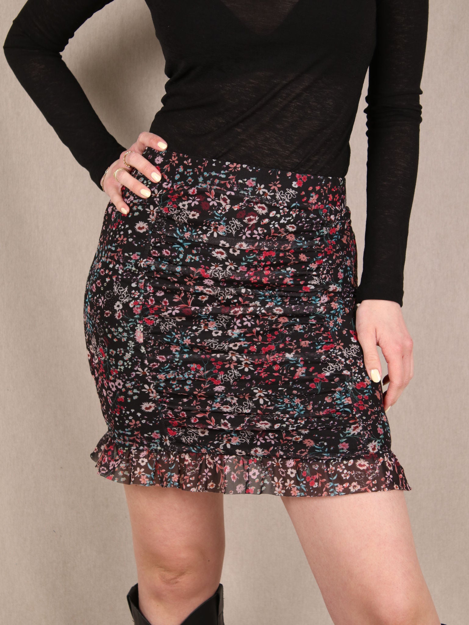 Minirock aus Mesh mit Blumen-Print und Rüschen