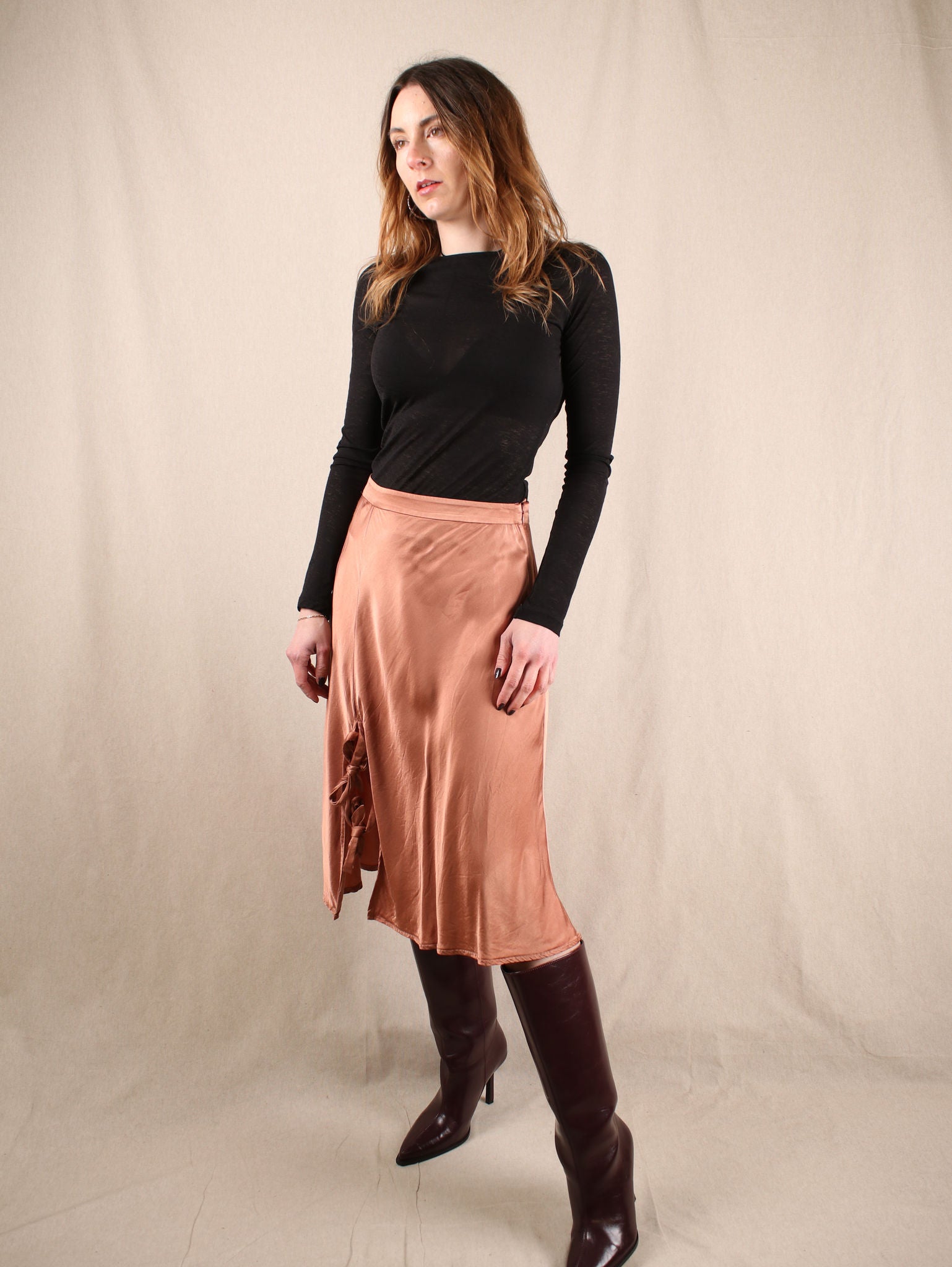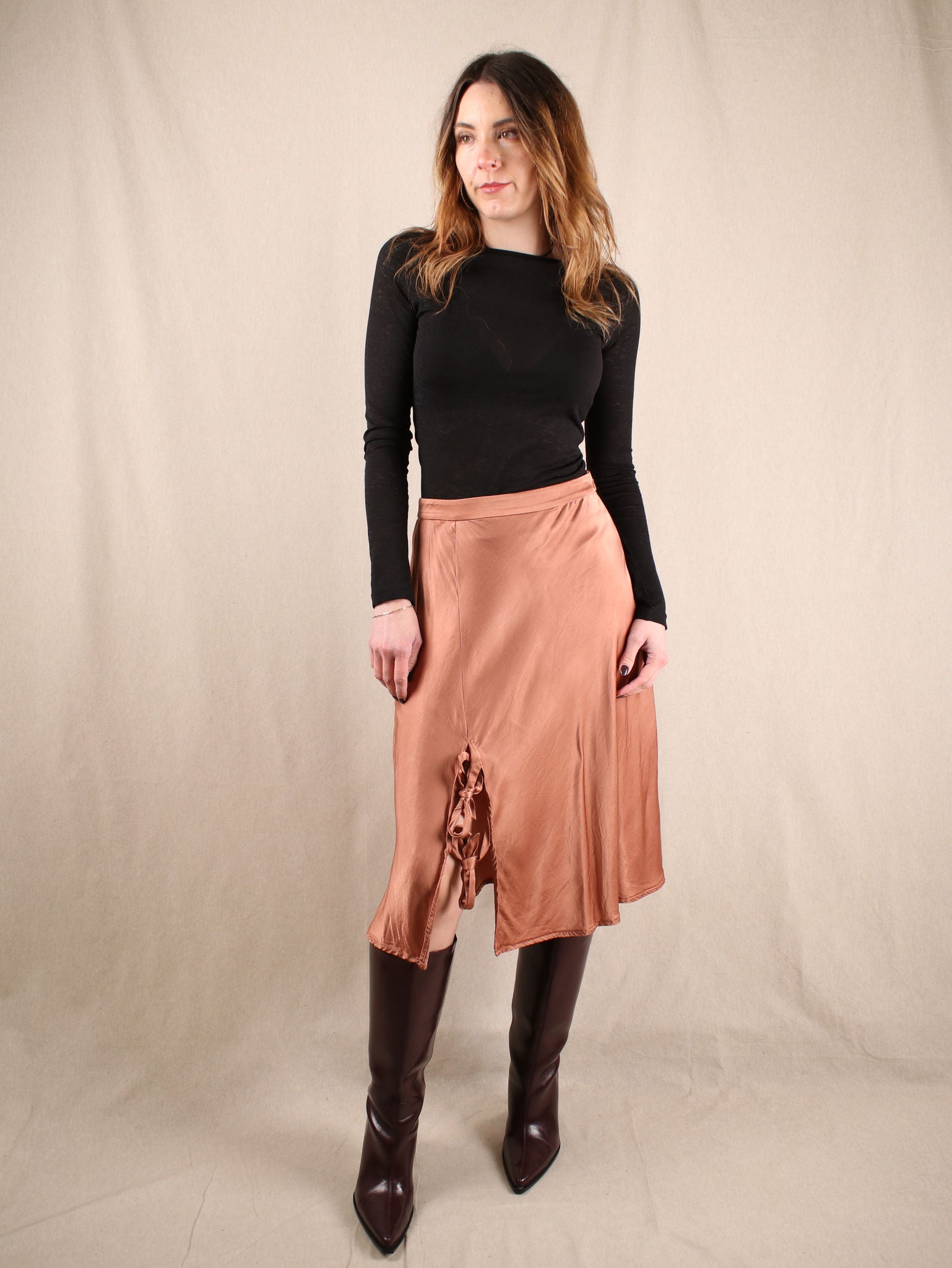 Satin Midirock mit Schleifen