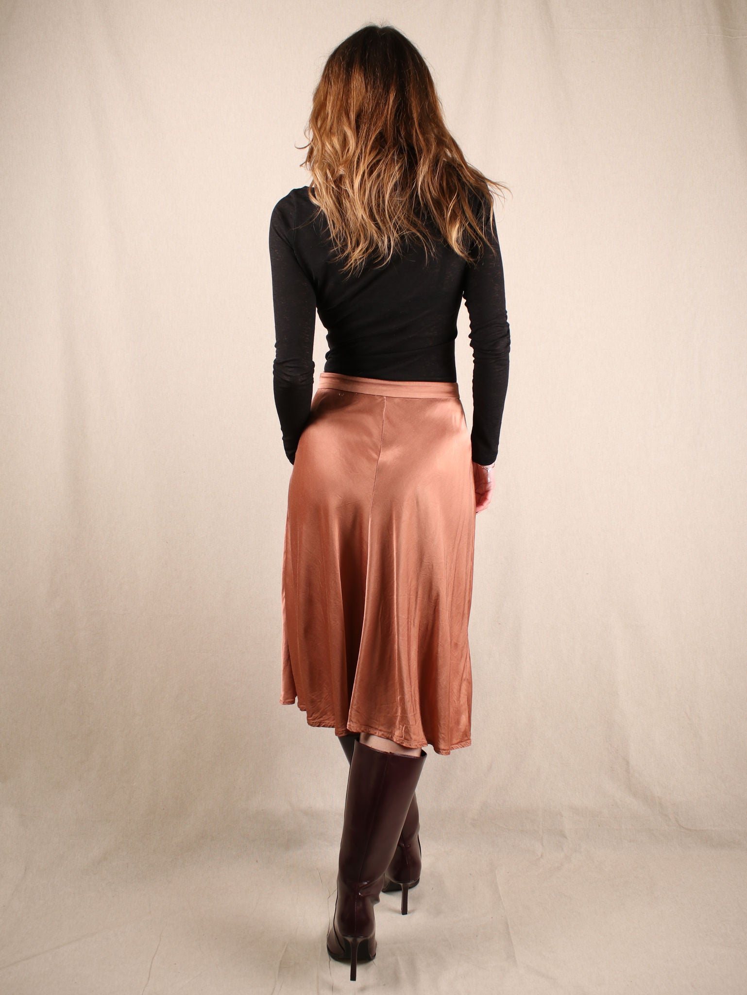 Dieser fließende Satinrock aus Viskose in Größe S ist ein echtes Secondhand Schmuckstück. Mit seinem glänzenden Finish und der soften Haptik bringt er nostalgische Y2K-Vibes in deine Garderobe. Ein vielseitiges Piece, das sich von casual bis chic stylen lässt.