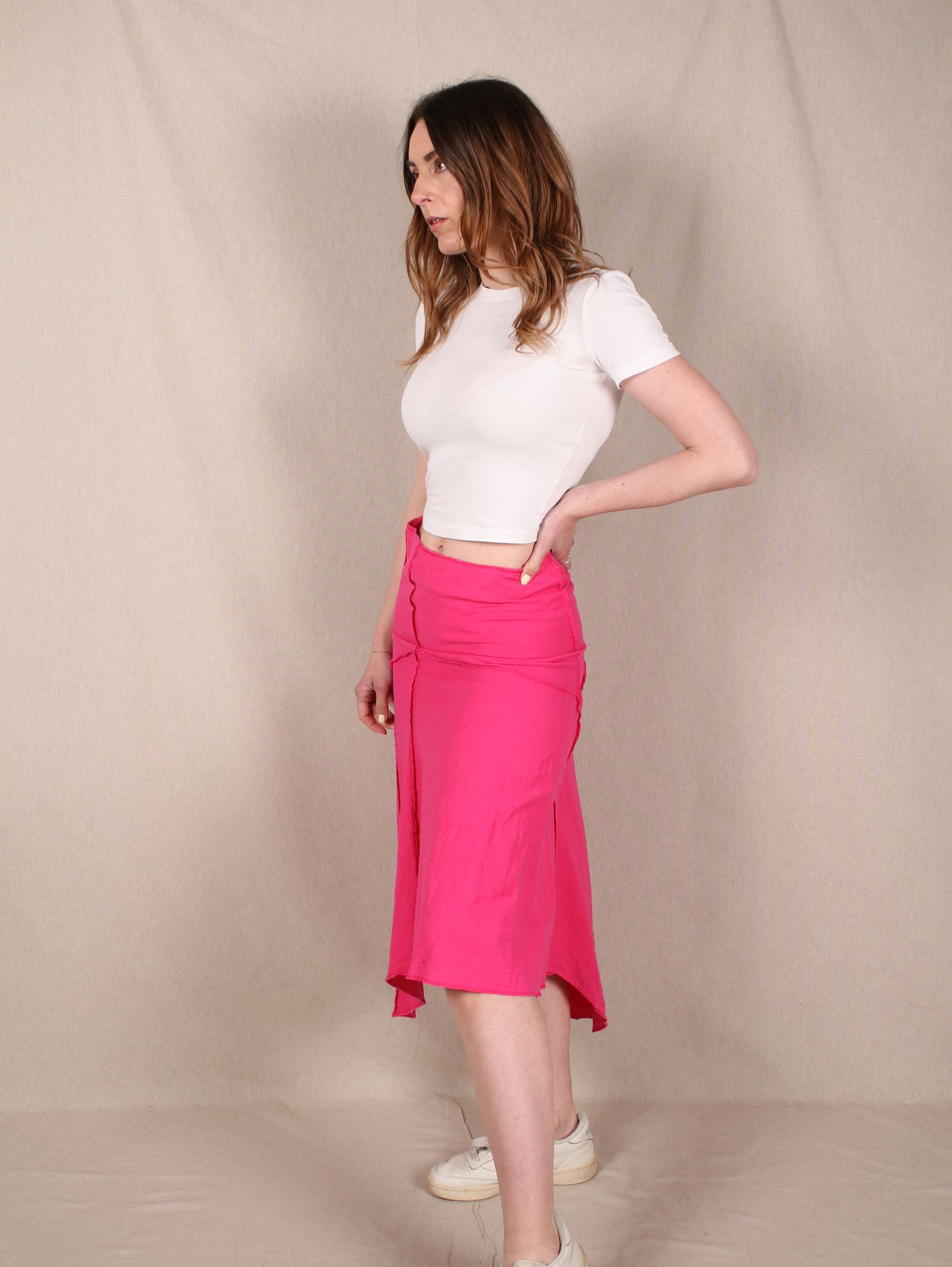 Dieser pinke Midirock von Twist & Tango ist dein Sommer-Statement zwischen Gelato-Date und Indie-Festival. Mit asymmetrischem Saum und lockerem Leinenstoff ist er lässig, luftig und absolut main character energy. Kombiniert mit Sneakern oder Sandalen – always a vibe.