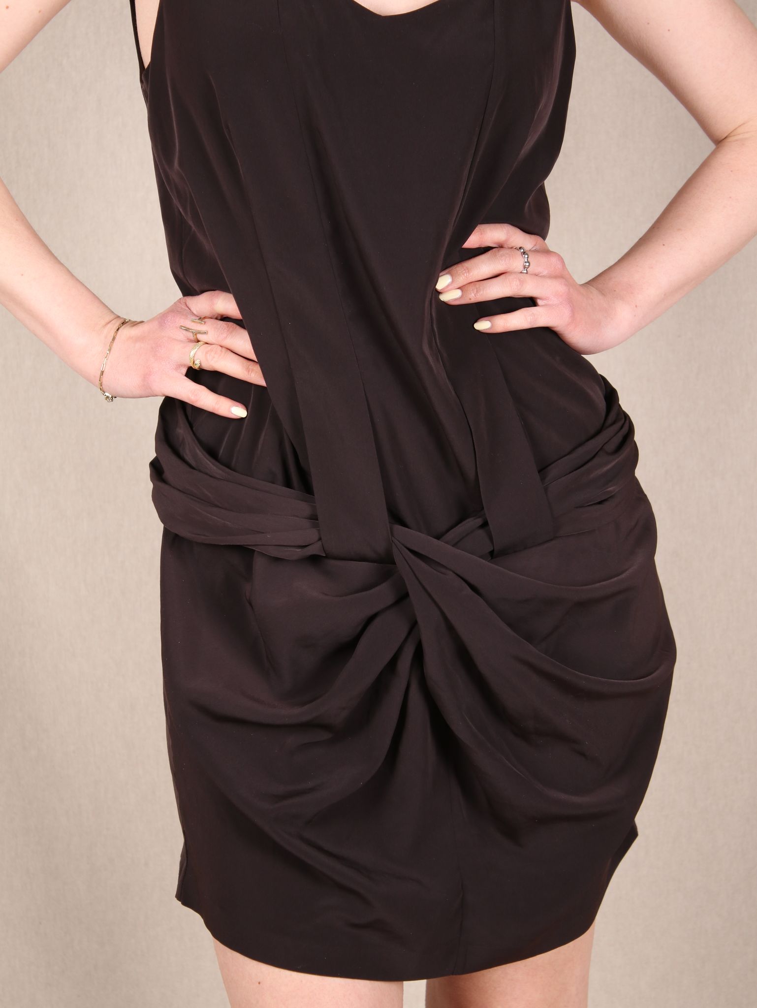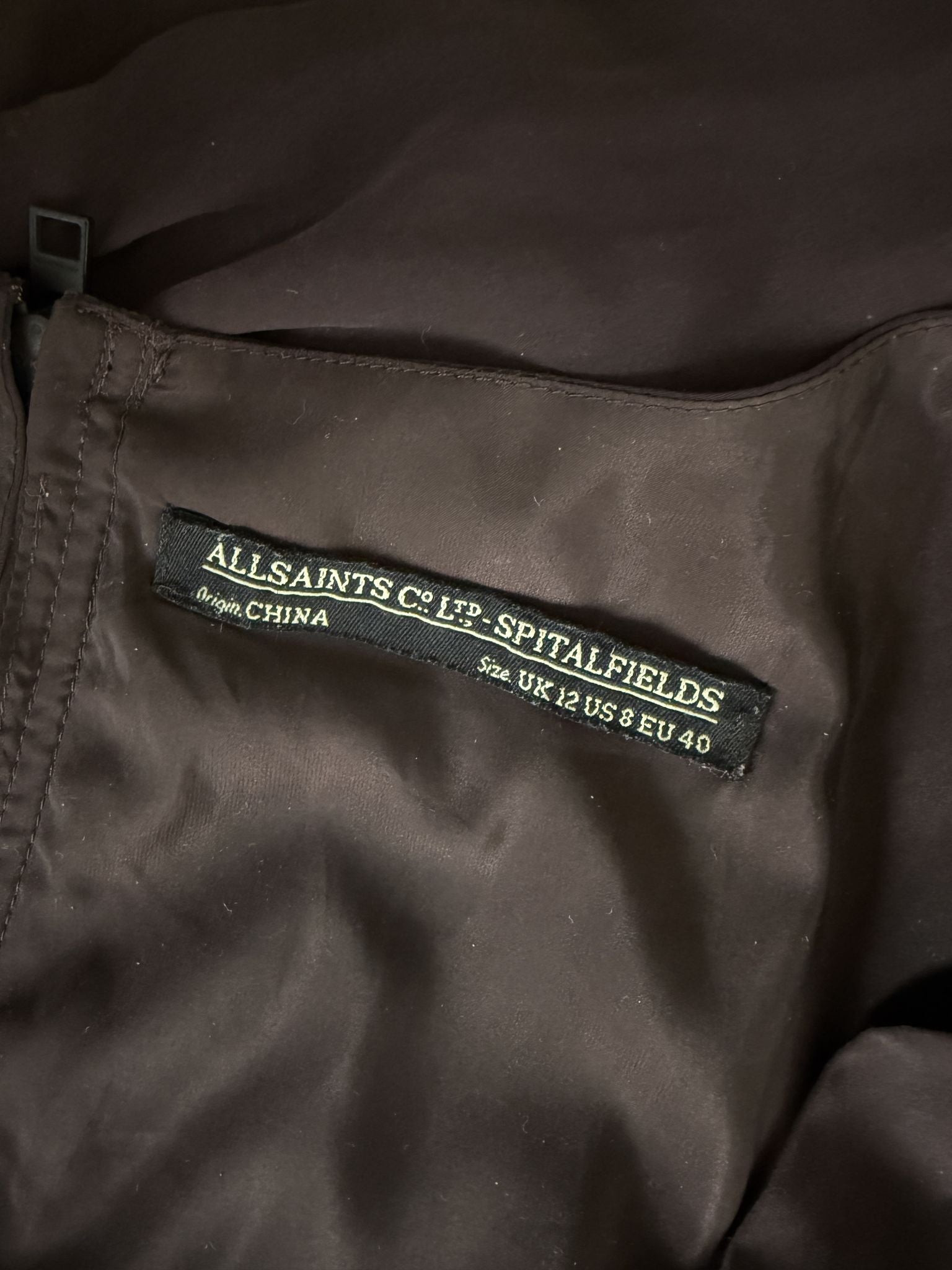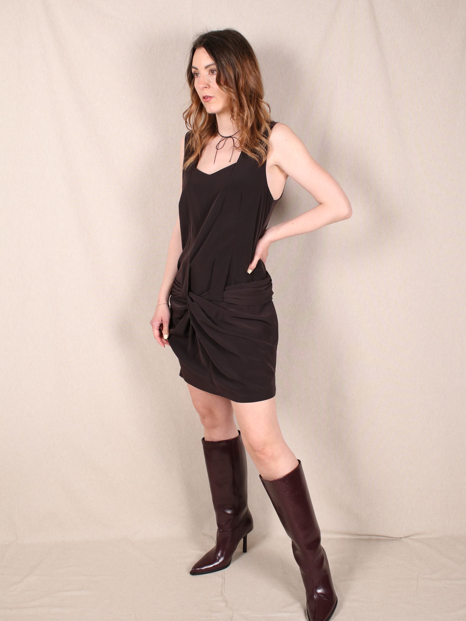 Dieses ärmellose Kleid von AllSaints bringt edlen Minimalismus auf ein neues Level. Der fließende Satinstoff in dunklem Schokobraun schmiegt sich locker an den Körper, während die raffinierte Drapierung auf Hüfthöhe für einen modernen Twist sorgt. Ob Date Night oder Gallery Opening - dieses Piece schreit „Understated Elegance“ mit einem Hauch 70s Vibe. Perfekt für alle, die mit wenig Aufwand maximal beeindrucken wollen.
